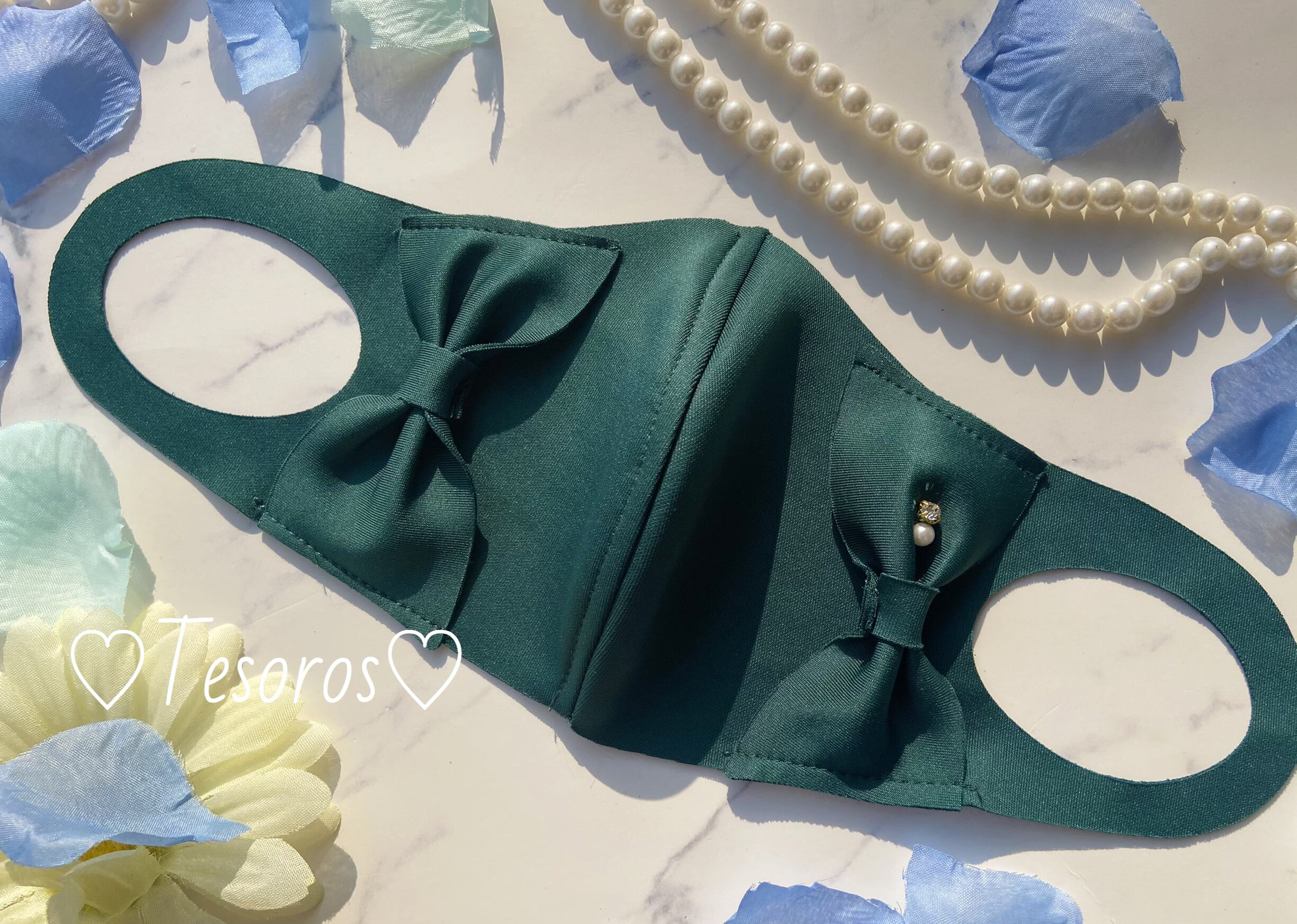 【ワイヤーなし】リボンマスク〈グリーン〉