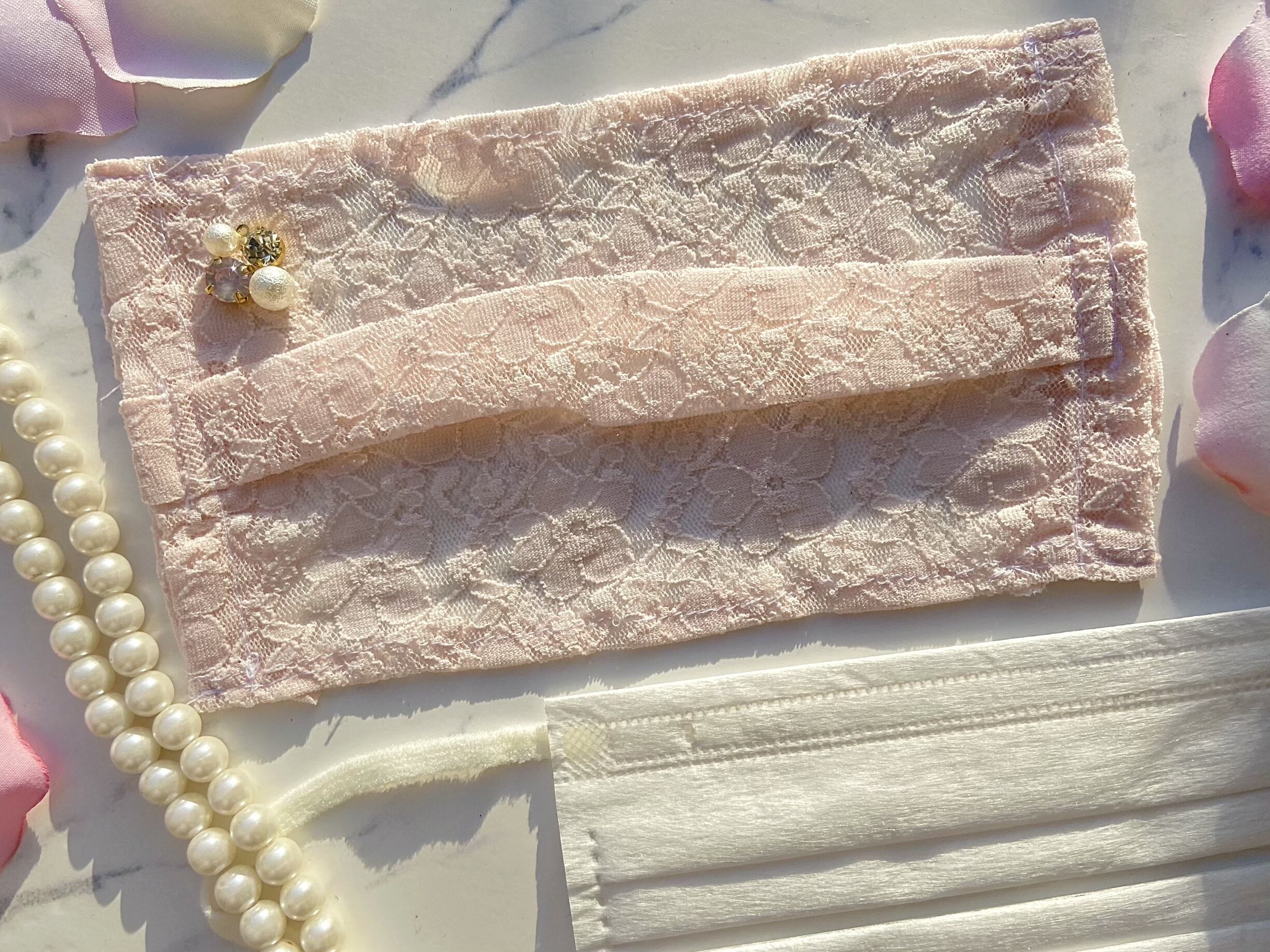ビジュー付レースマスクカバー〈ピンク〉