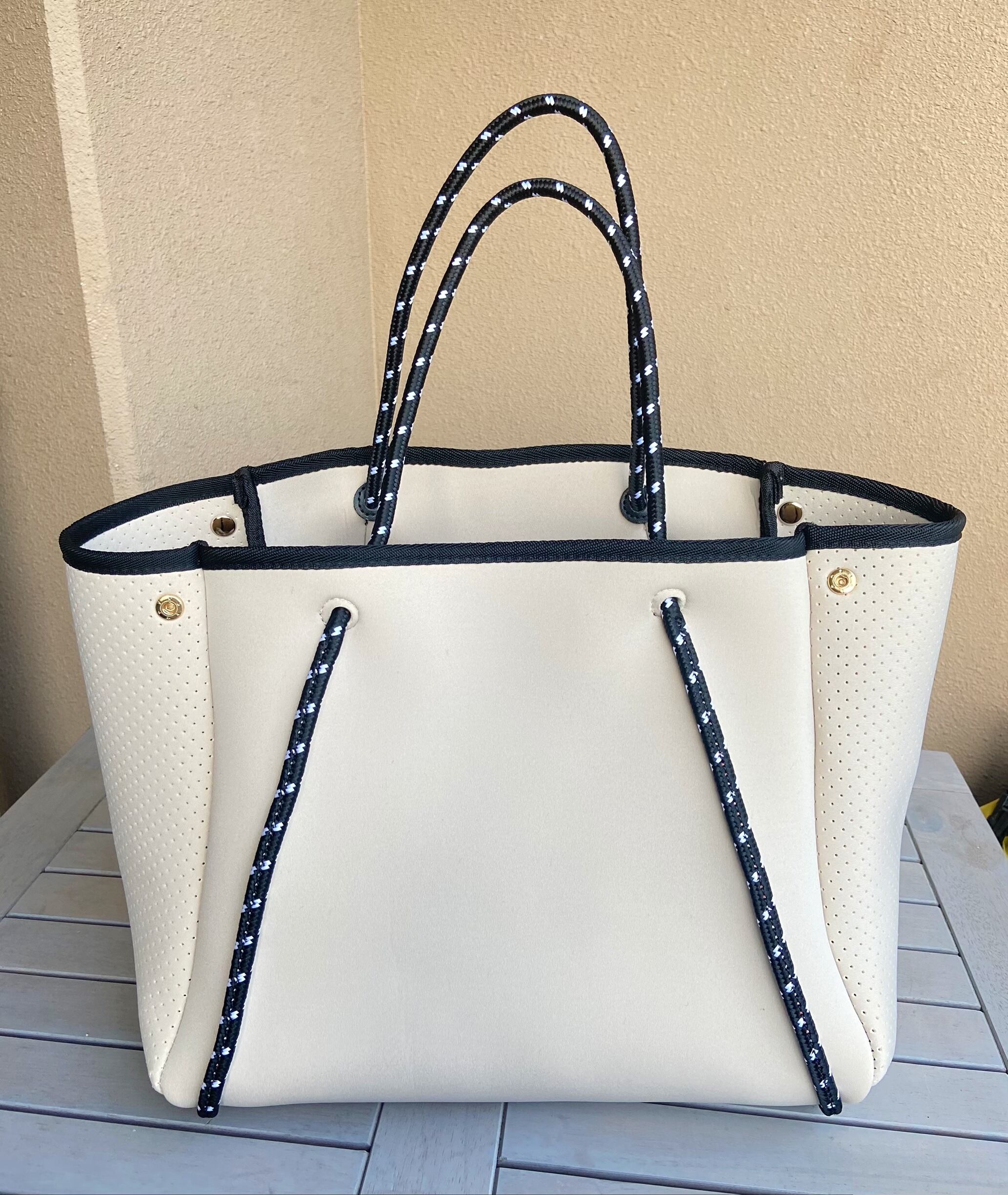 軽量で手洗い可能なA4サイズ対応トートバッグ(パール有りアイボリー)