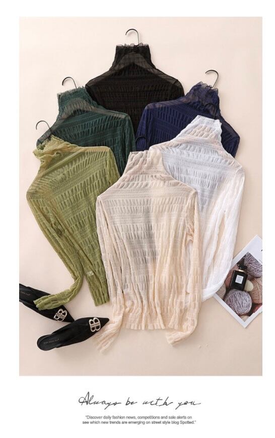 あわせやすいシンプルでオシャレなしわしわシースルートップス◌⑅⃝