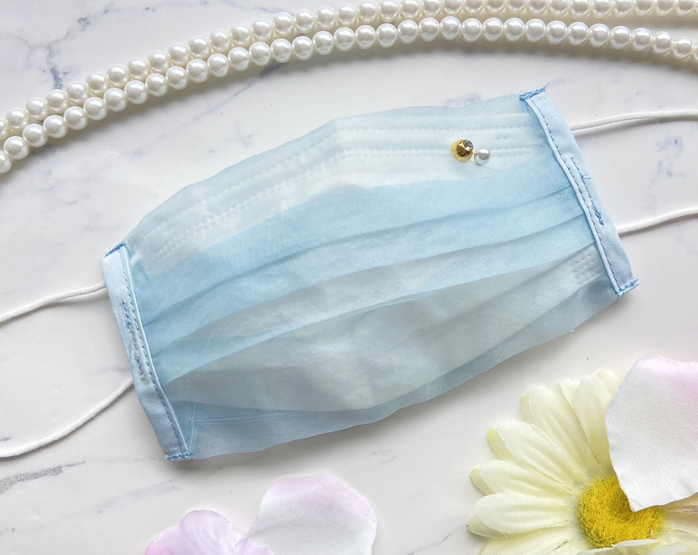 生地に程よく透け感のあるオーガンジー素材で、不織布マスクとセットした時の重なり具合が綺麗♡