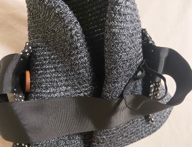 リボンの裏のボタンにゴムをひっかけるだけでコンパクトに畳める便利な仕様◎