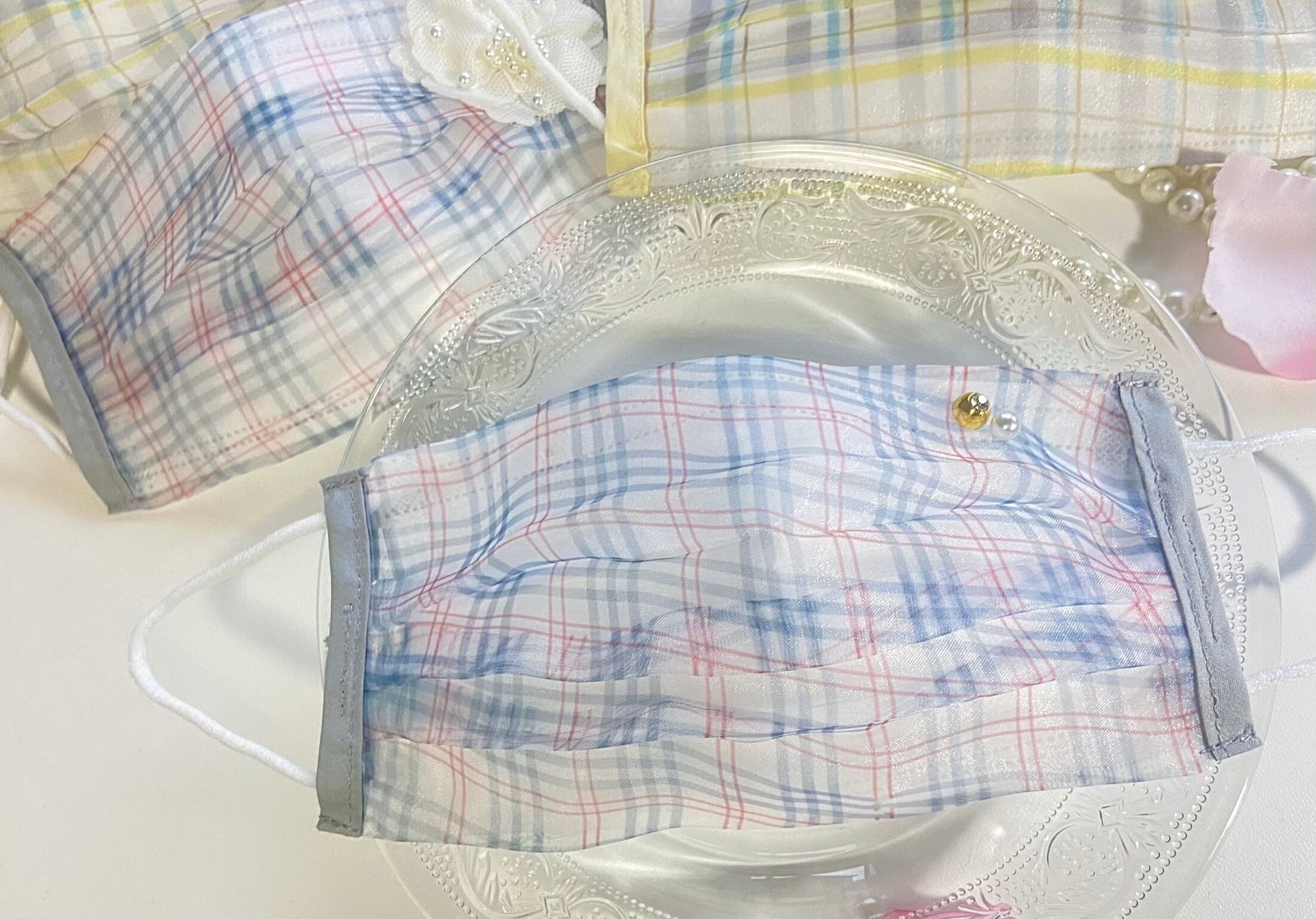 生地に程よく透け感のあるオーガンジー素材で、不織布マスクとセットした時の重なり具合が綺麗♡