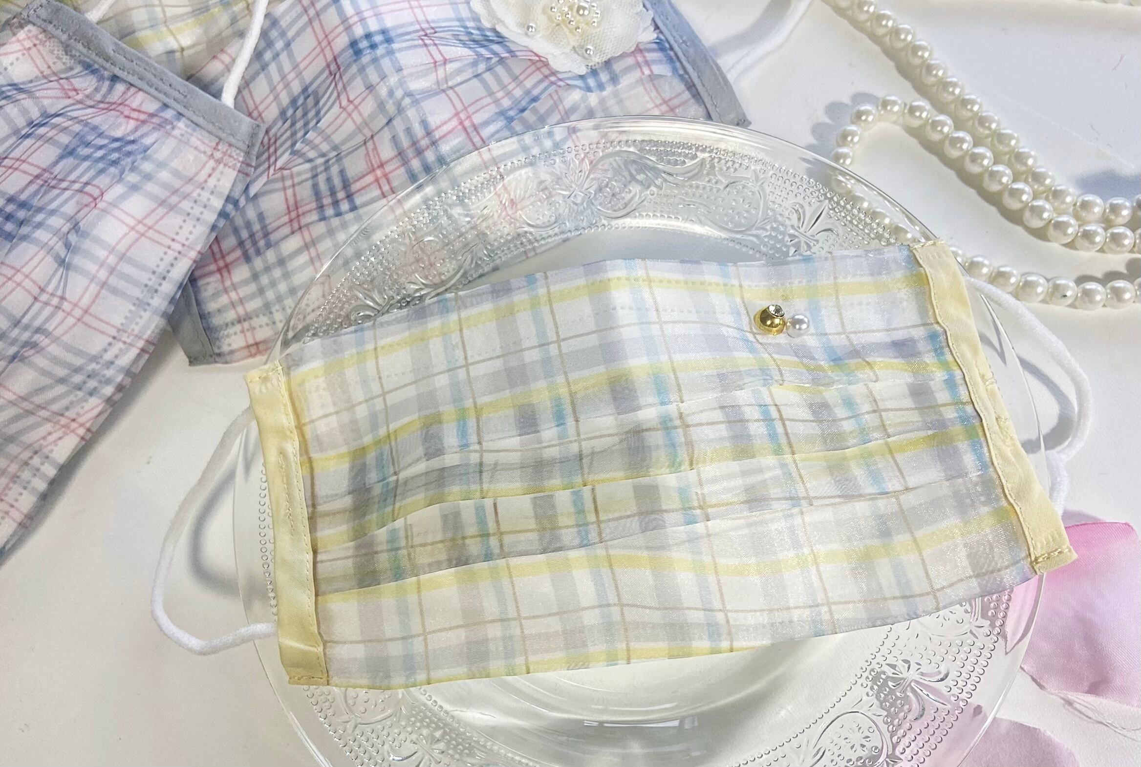 シンプルオーガンジーマスクカバー〈チェックイエロー〉