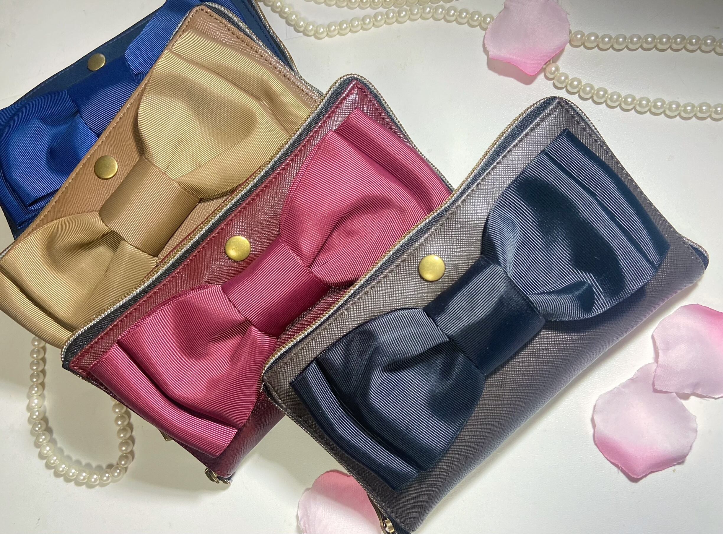 大きめリボン付コンパクトバッグ〈ブラック〉
