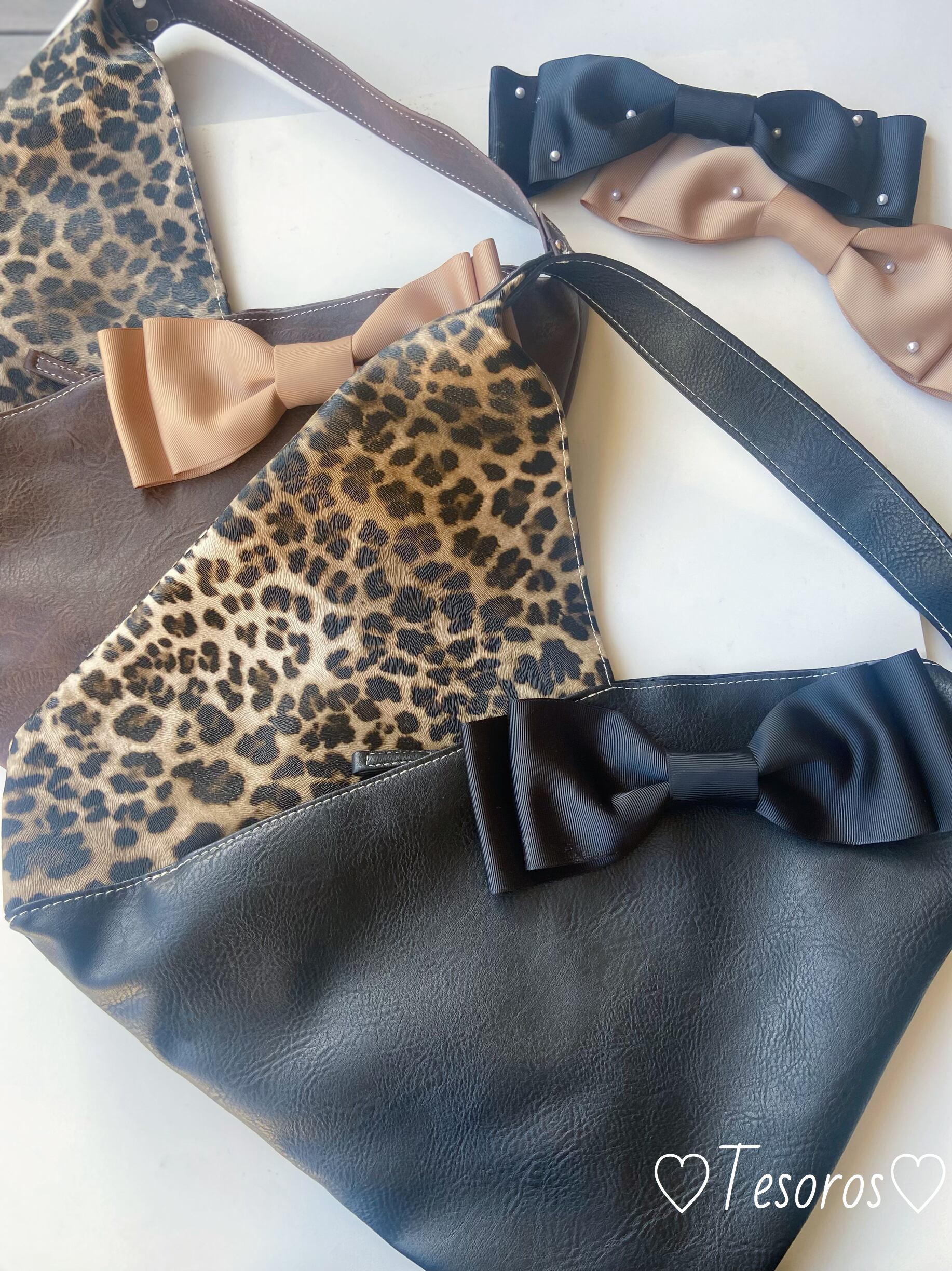 アニマルパンサー柄と無地の合皮を斜めに切り替えたトートバッグ◌⑅⃝