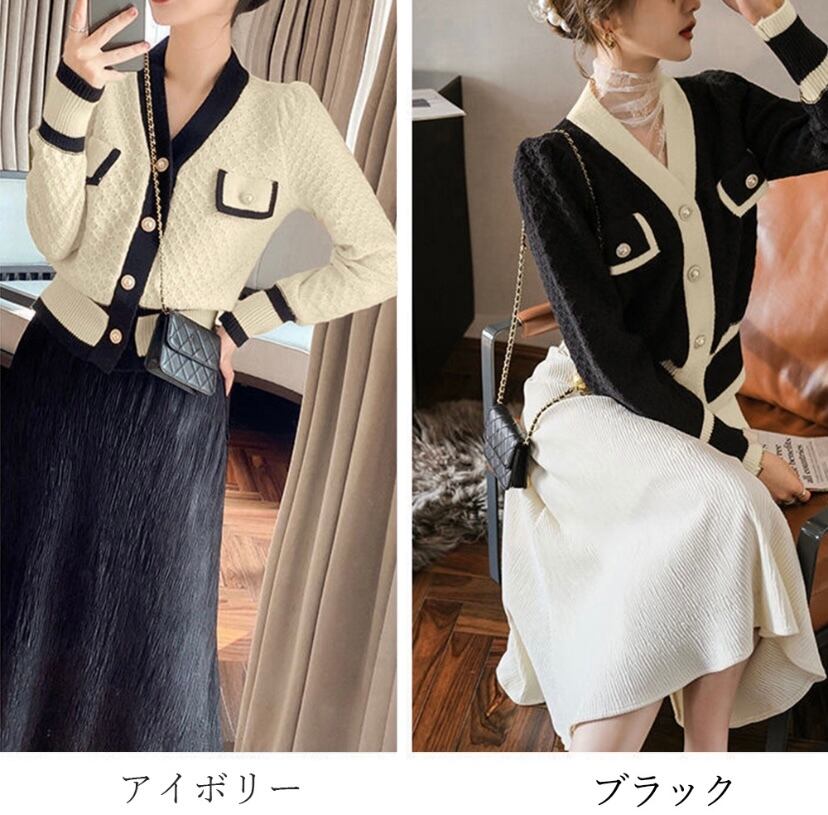シンプルスタイルにさらっと羽織るだけで華やかな印象になる配色ニットカーディガン*·⑅❁