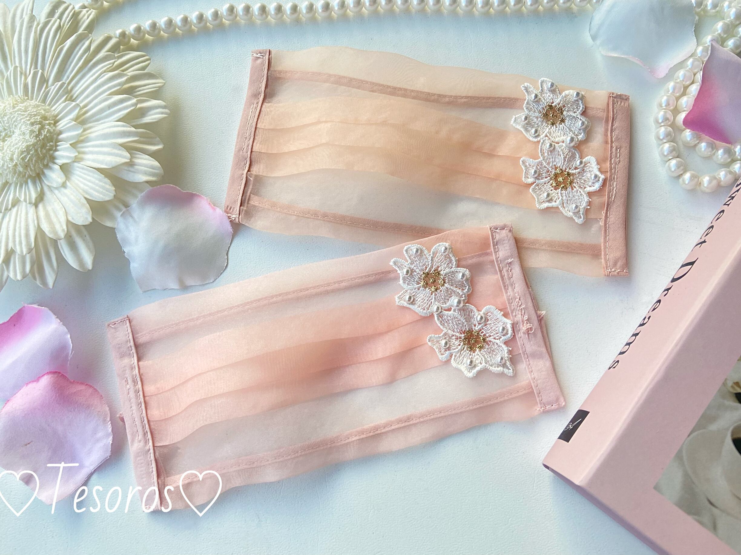 生地に程よく透け感のあるオーガンジー素材で、不織布マスクとセットした時の重なり具合が綺麗♡