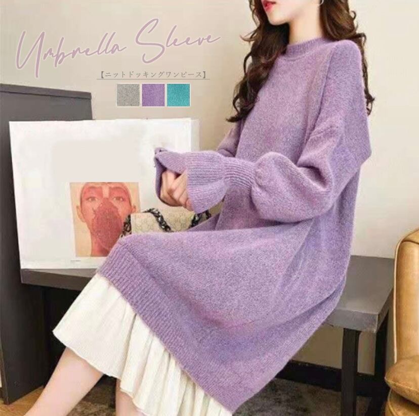 花びらのようなアンブレラスリーブとゆるふわ可愛いニット生地のロングワンピース◌⑅⃝