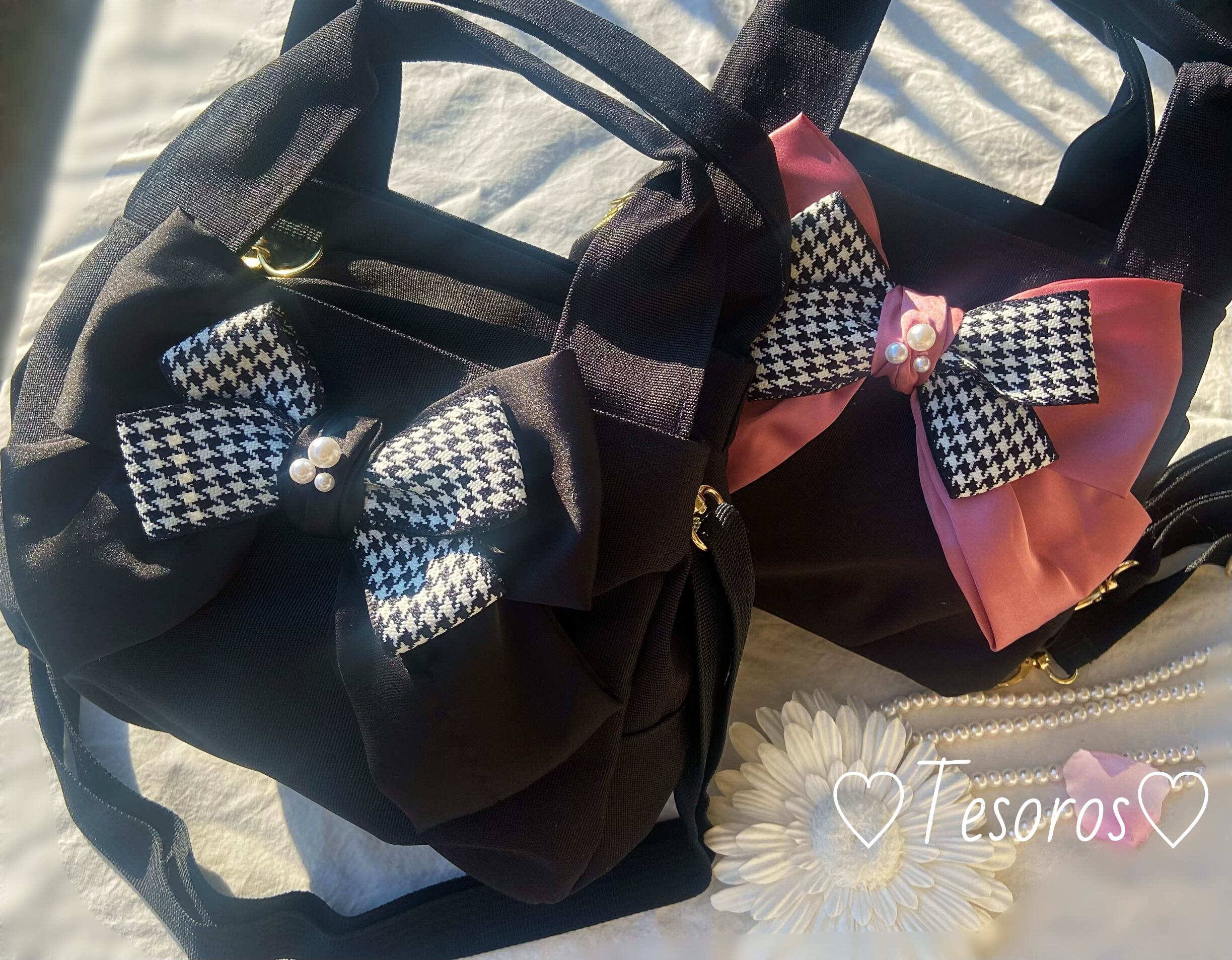 千鳥柄リボンの2wayバッグ〈ブラックリボン〉