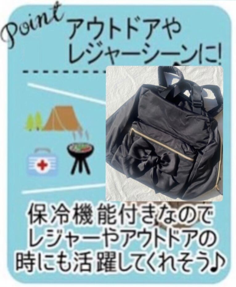 内側に保冷剤などを入れるメッシュポケット付保冷機能付きなので、アウトドアやレジャーシーンに活躍
