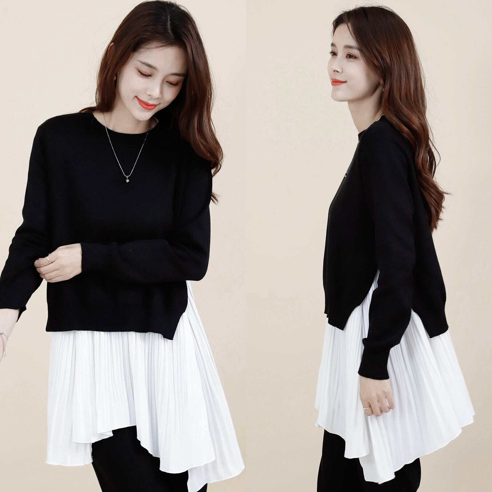 プリーツインナー×ニットプルオーバー 〈ブラック〉