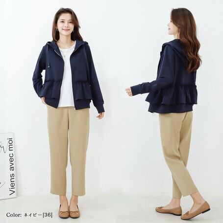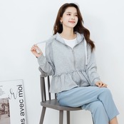 フリルデザインジップパーカー〈グレー〉