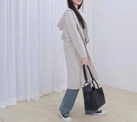 バックフリルジップアップパーカーコート〈ベージュ〉