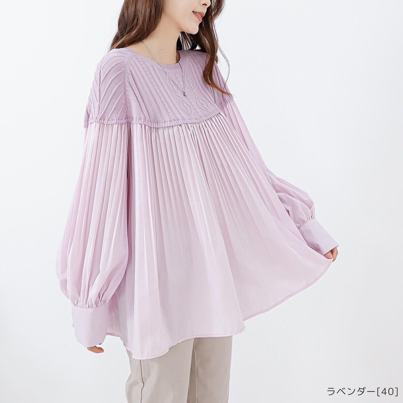 薄手の編地ニット柄からプリーツに切り替えたデザイン