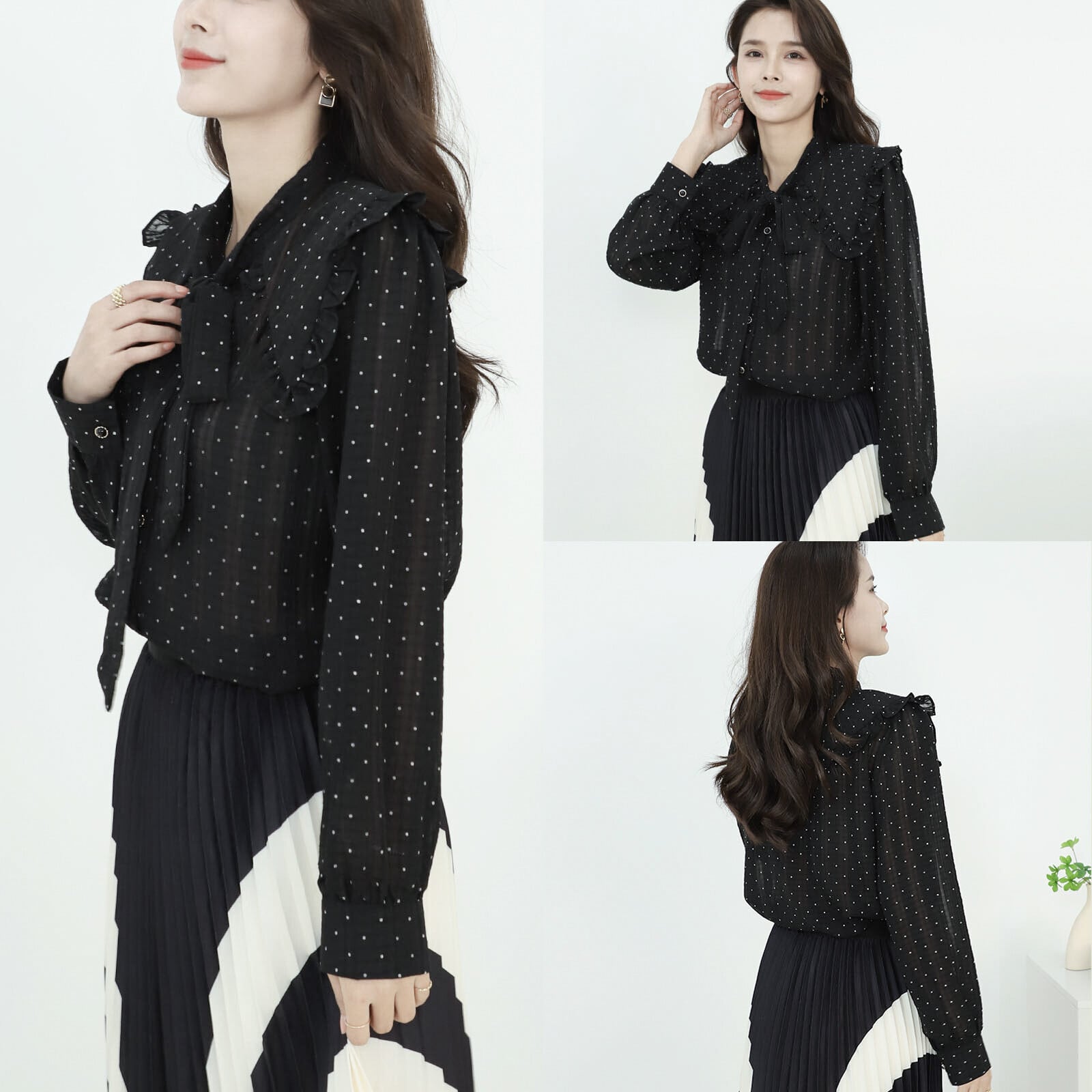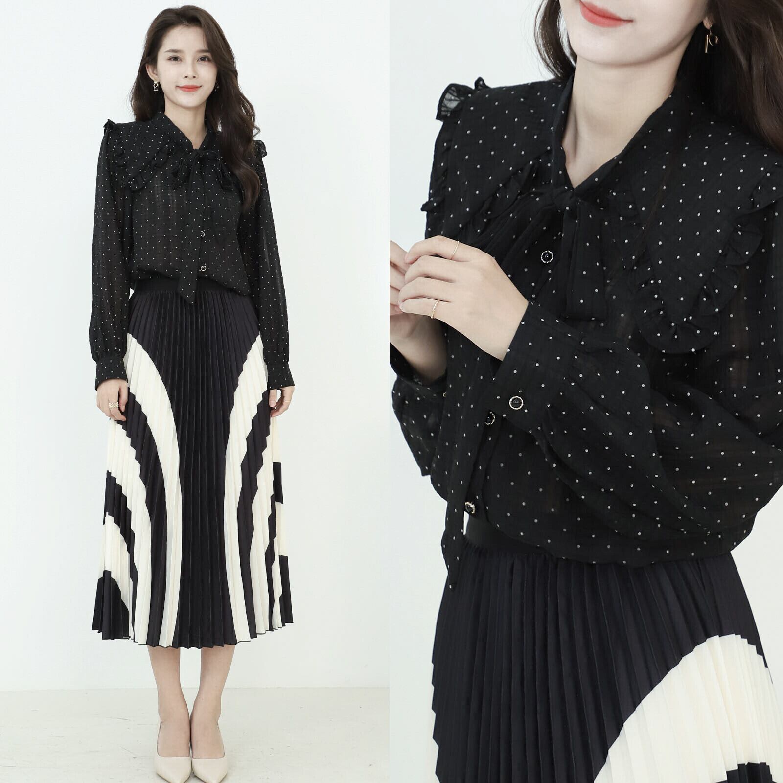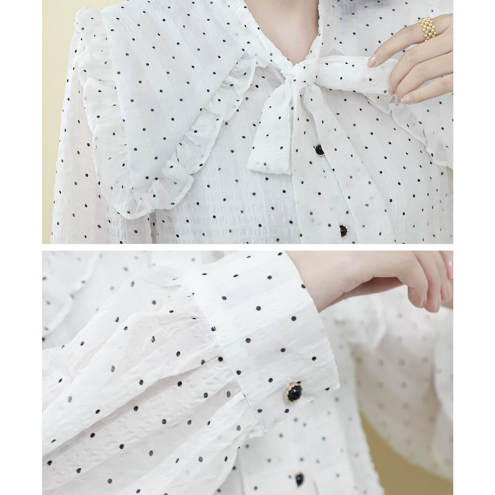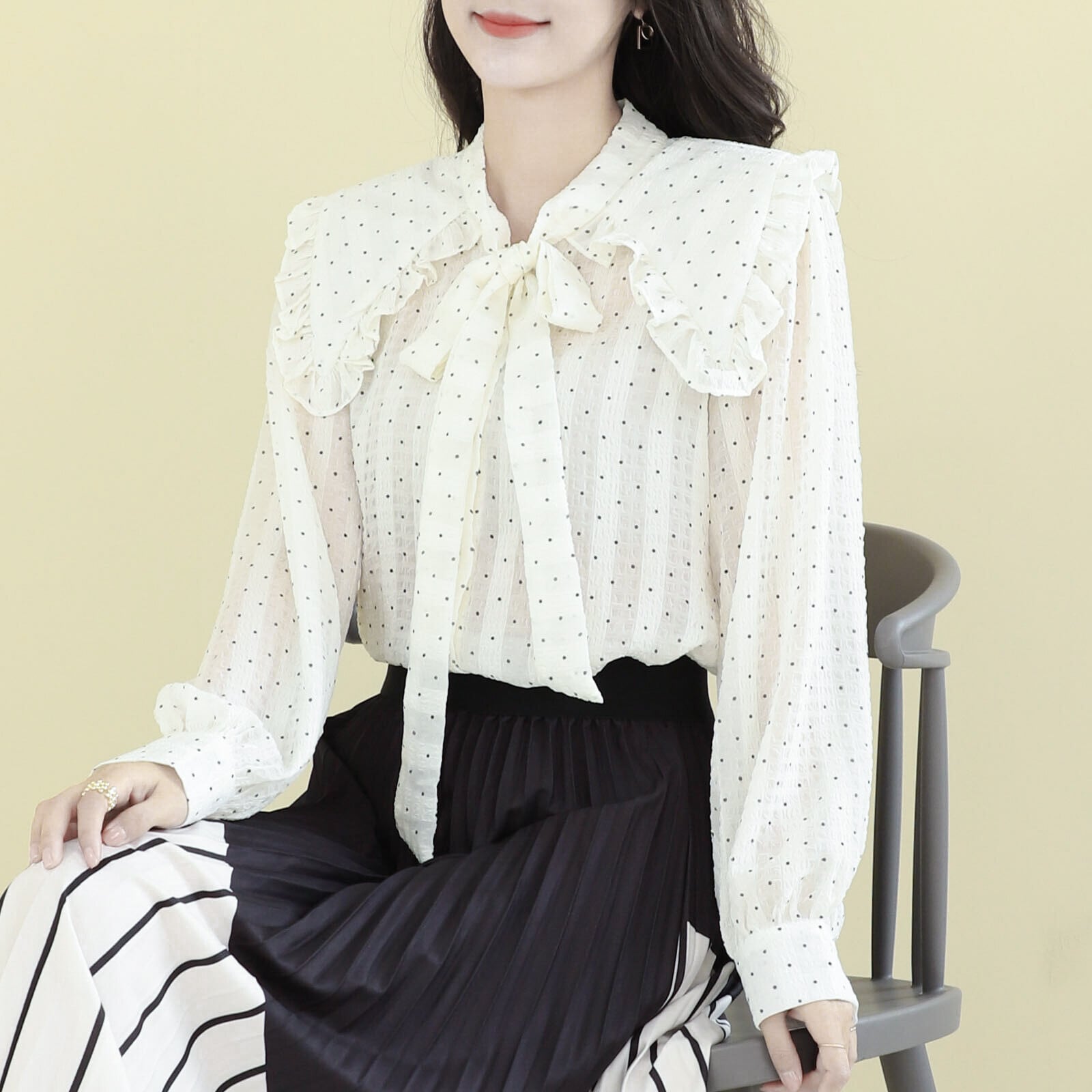 トレンドライクなビッグフリルカラーが視線を誘うブラウス