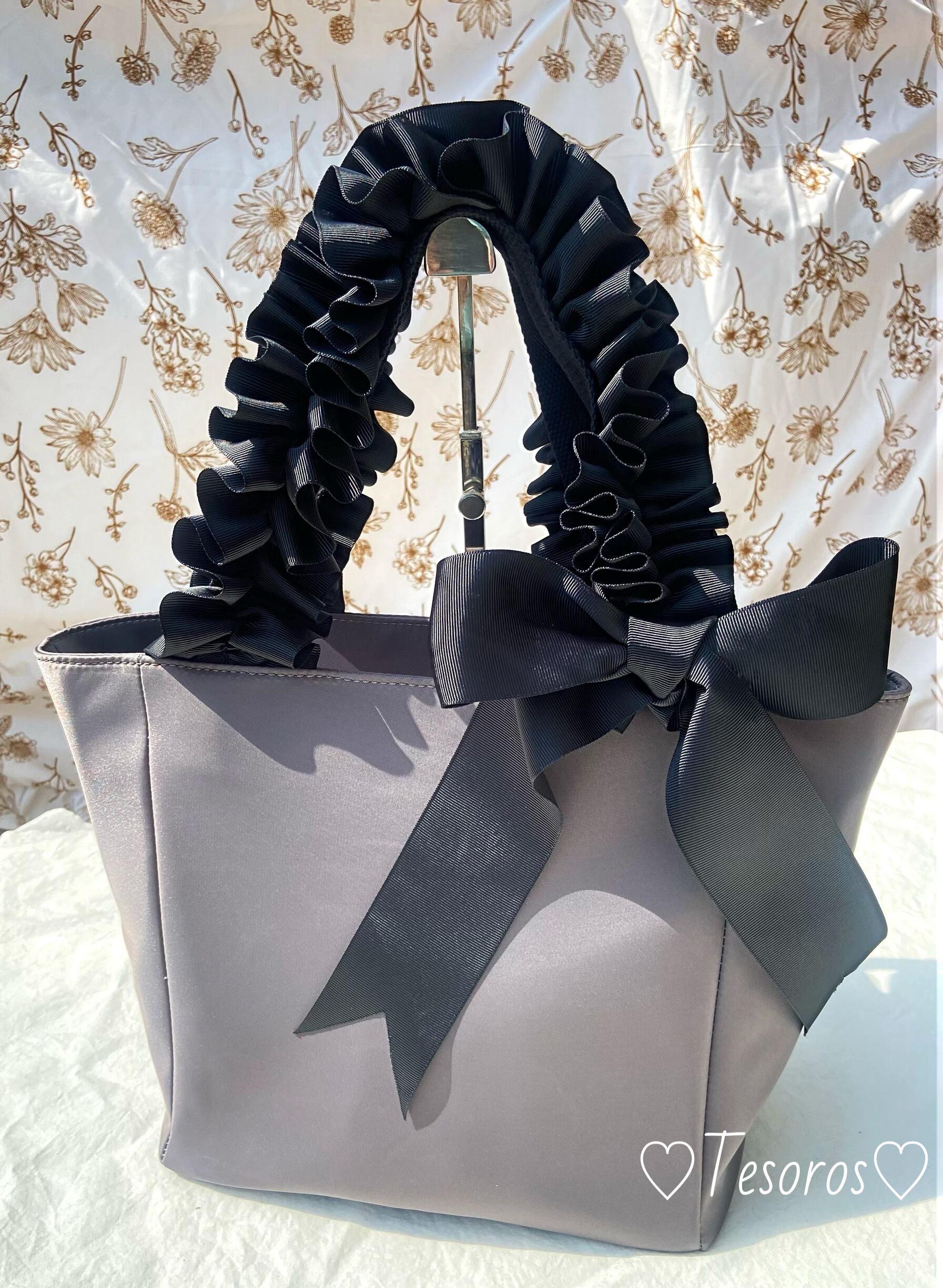 フリルリボンナイロンバッグ〈グレーブラック〉