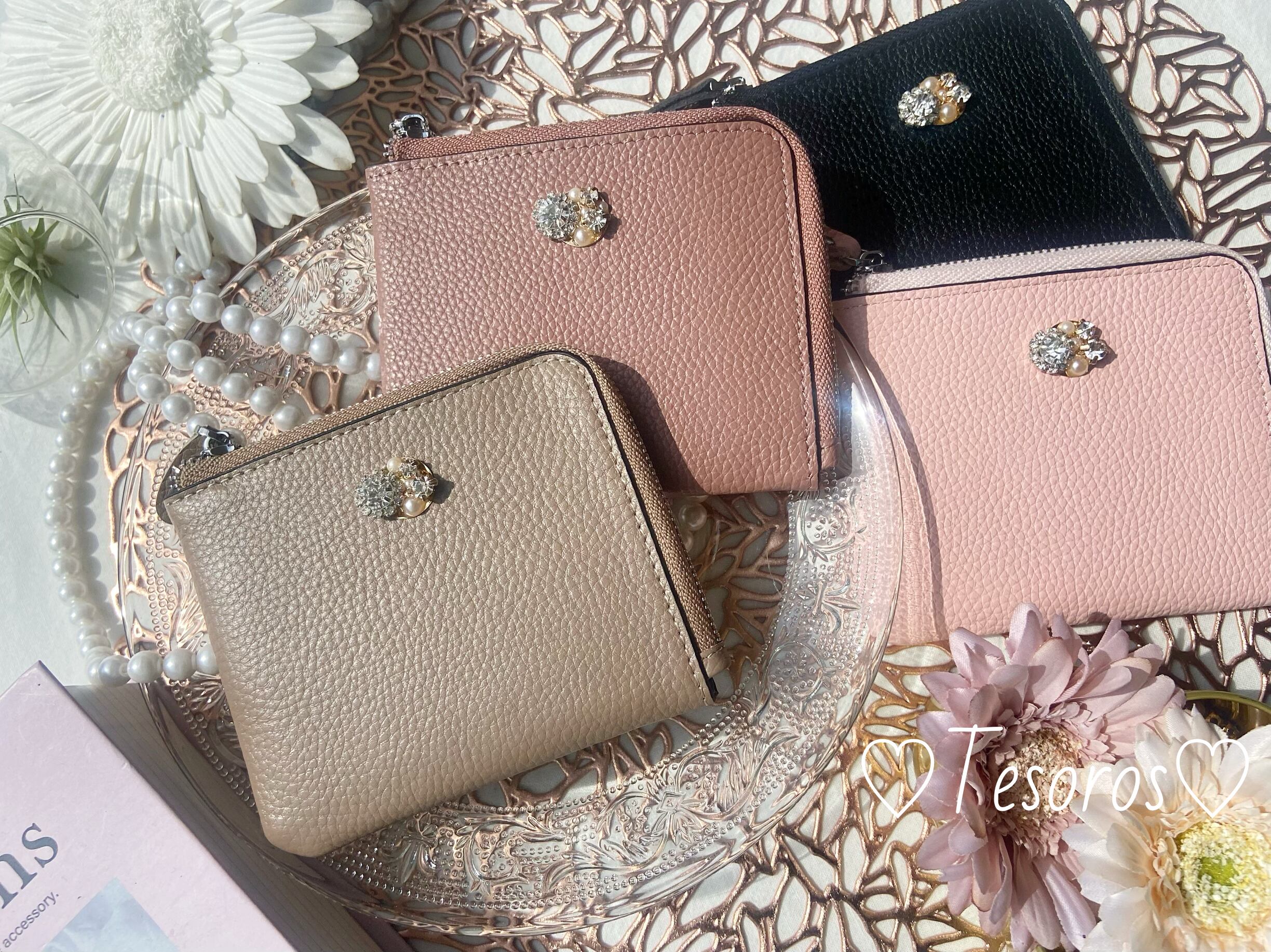 本革ビジュー付ミニ財布〈グレーベージュ〉