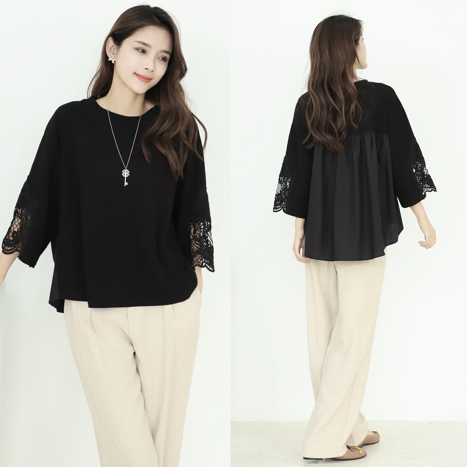 後ろ身頃を途中で同色の布帛生地で切り替えており、ギャザーによりフェミニンな印象❁