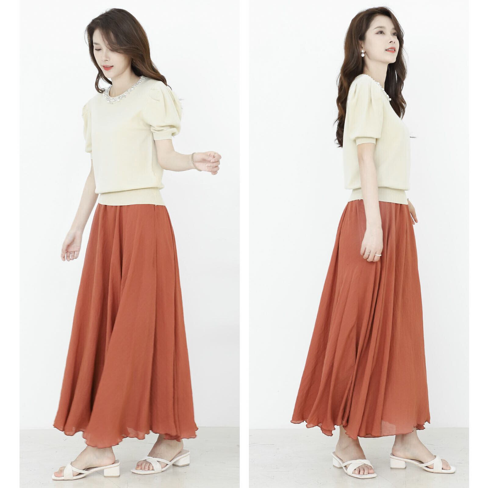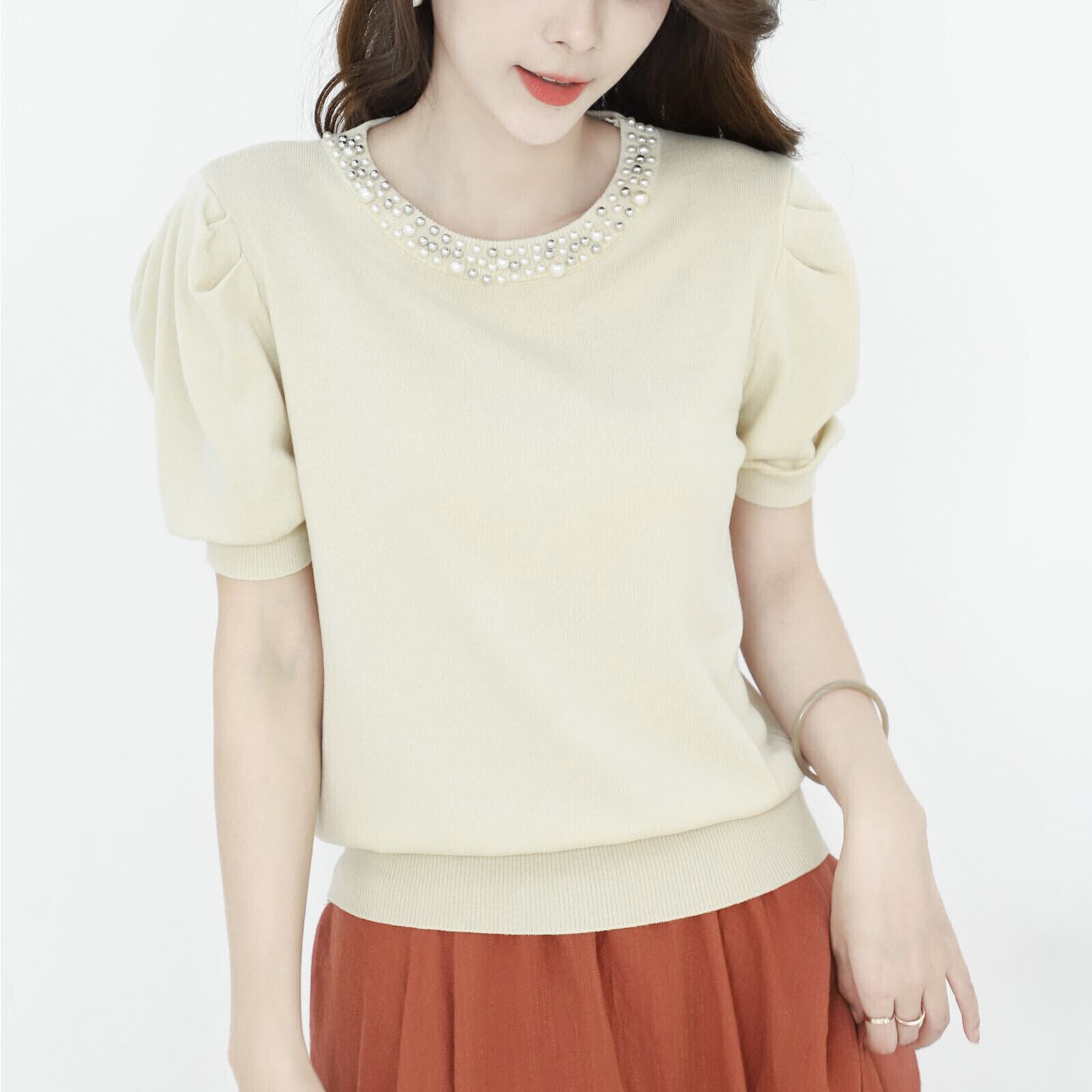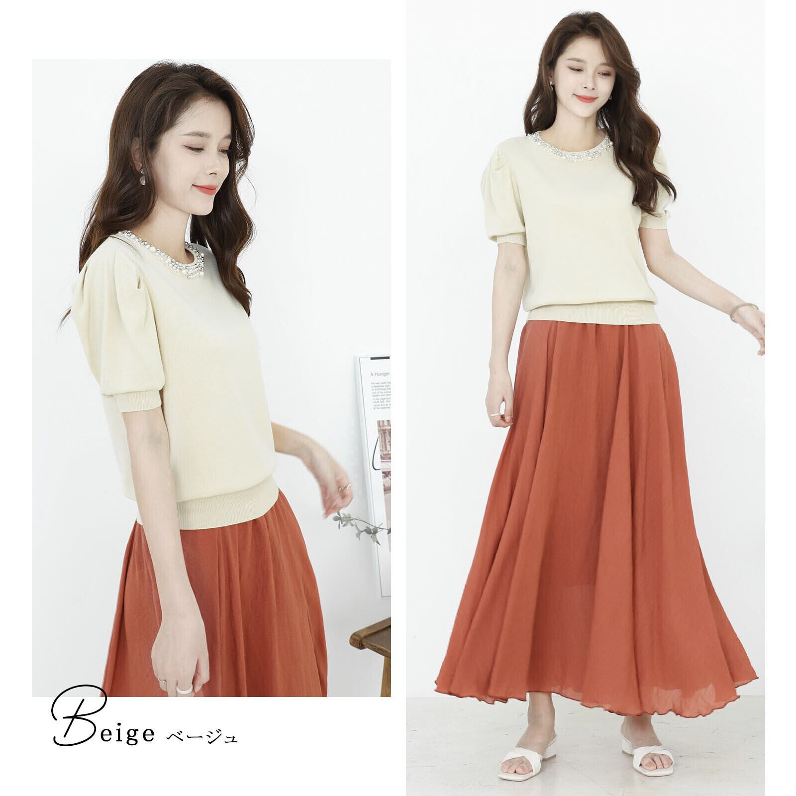ネックビジュー付きプルオーバー〈ベージュ〉