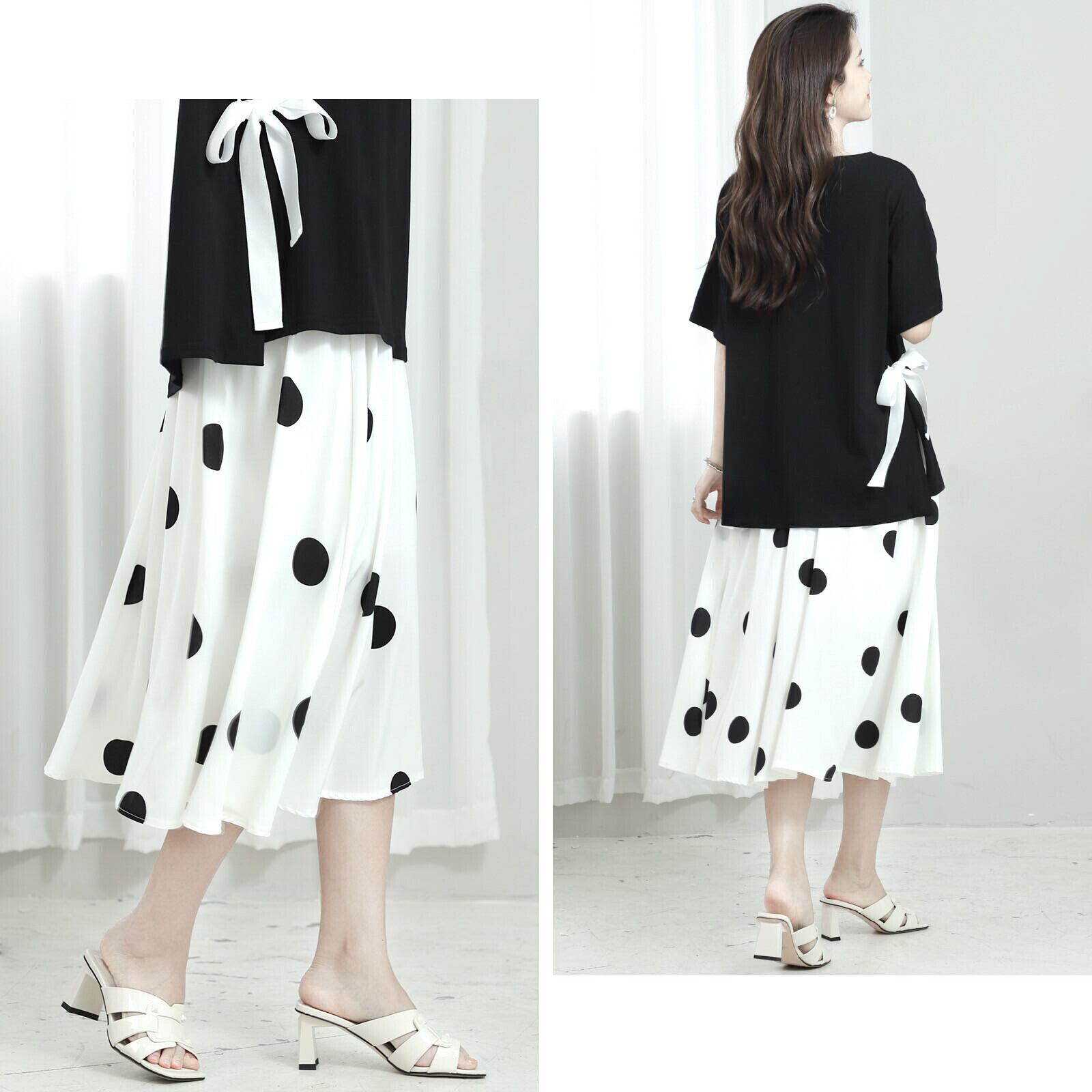 ウエストゴムドット柄フレアスカート〈ホワイト〉