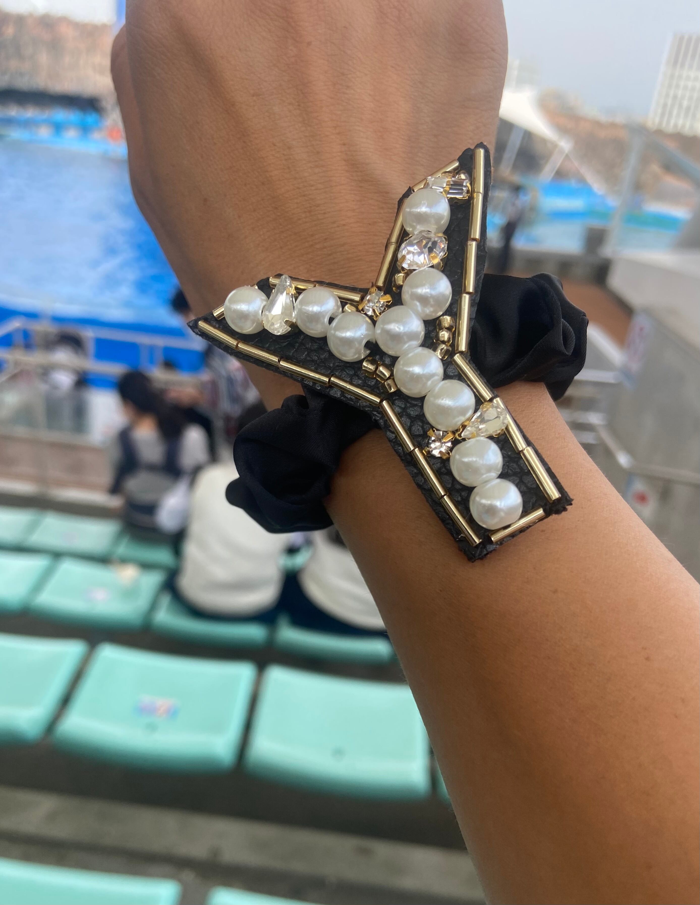 パール・ビジュー・ビーズを縫い付けたシュシュ✧*。