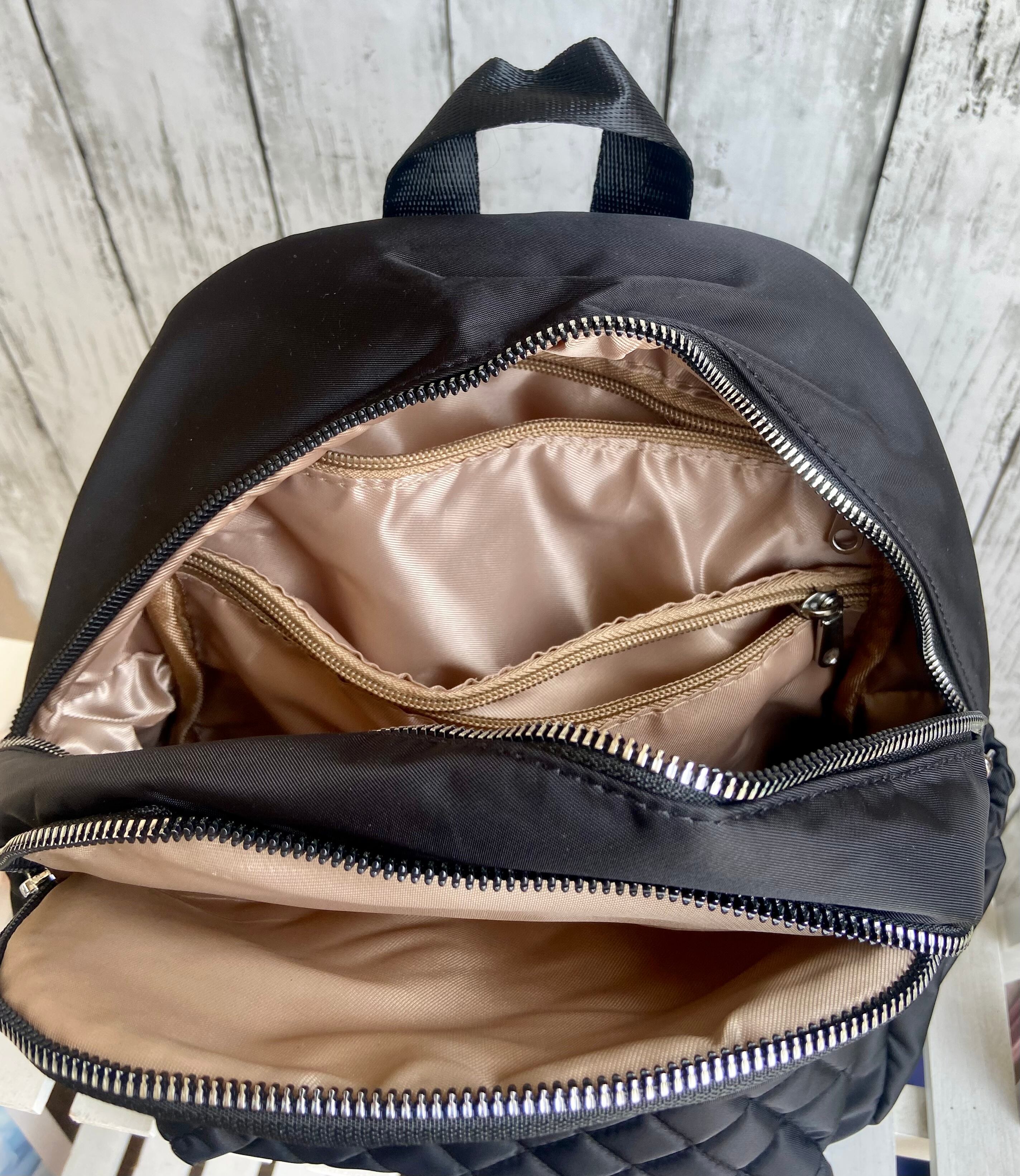 ファスナーポケットいっぱいのキルティングリュックバッグ