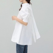 前後2wayリボンタイ付ブラウス〈ライトベージュ〉