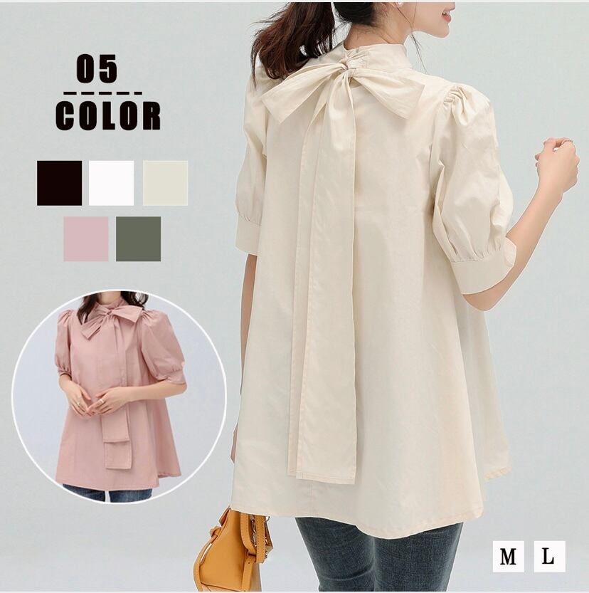 前後2wayリボンタイ付ブラウス〈ブラック〉