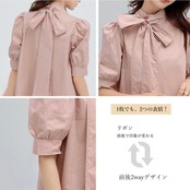 前後2wayリボンタイ付ブラウス〈カーキベージュ〉