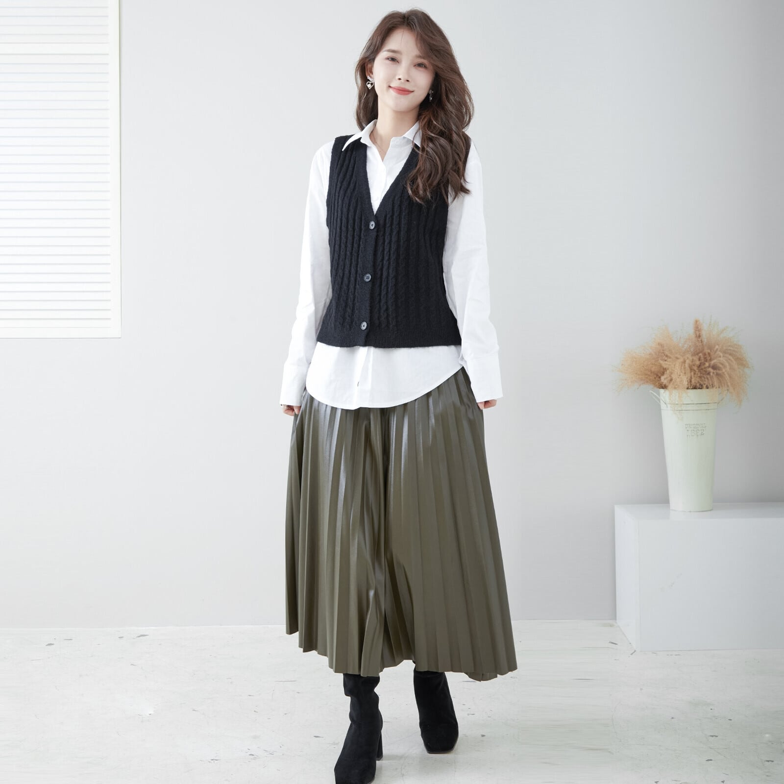 ジャガードケーブルニットベスト〈ブラック〉