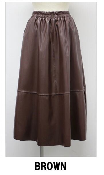 ポケット有りシンプルレザースカート〈ブラウン〉