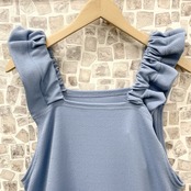 フリルポケット付きワンピース〈ブルー〉