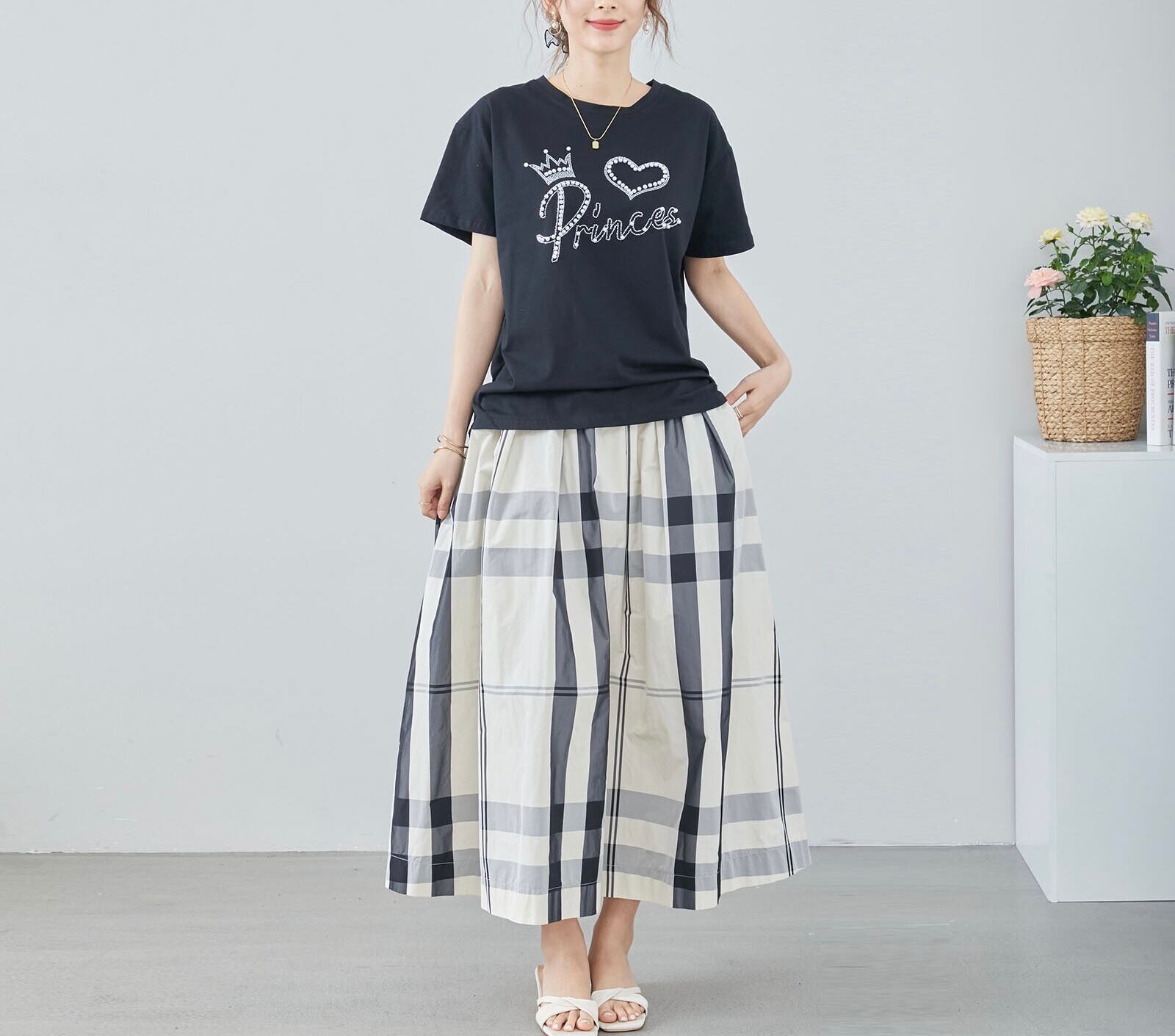 パールラインストーンTシャツ〈ブラック〉