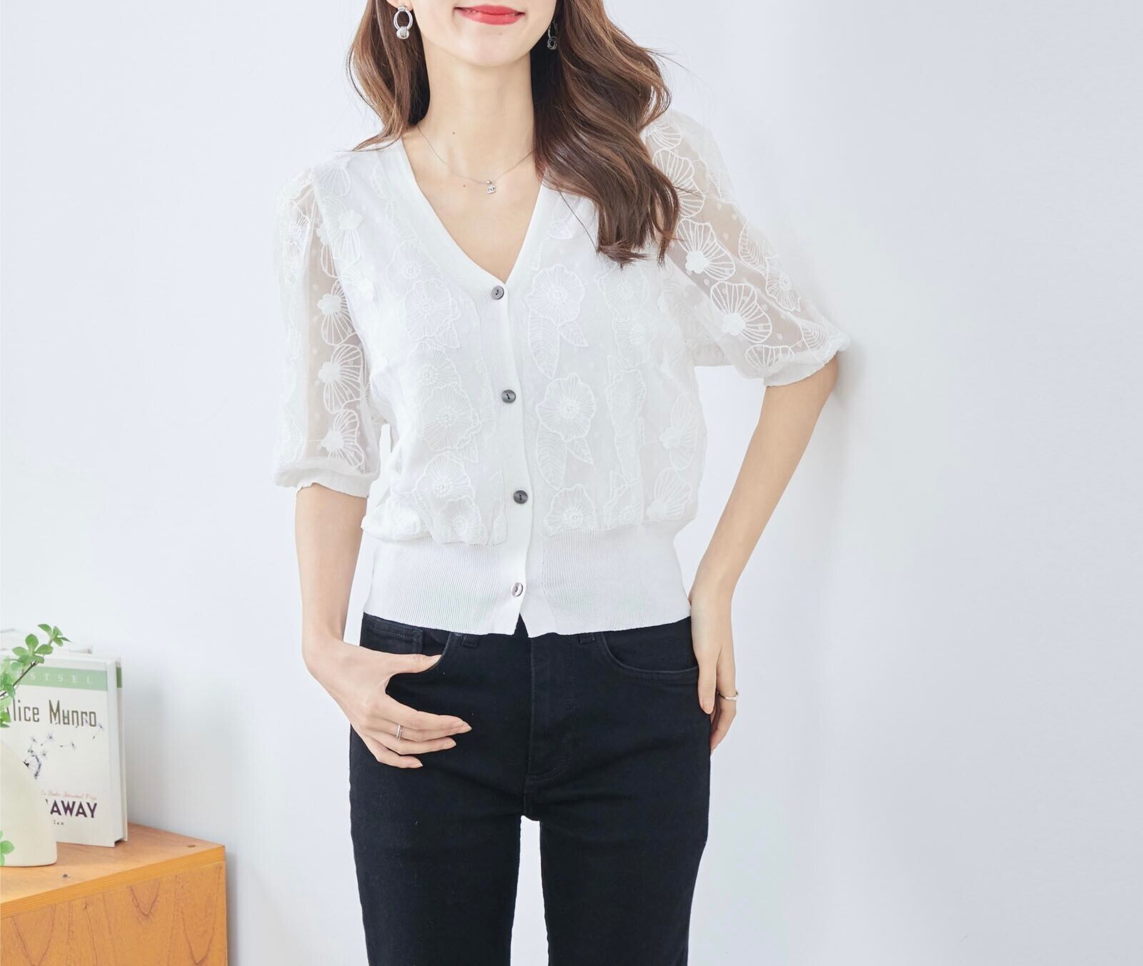 レースニットカーディガン〈ホワイト〉
