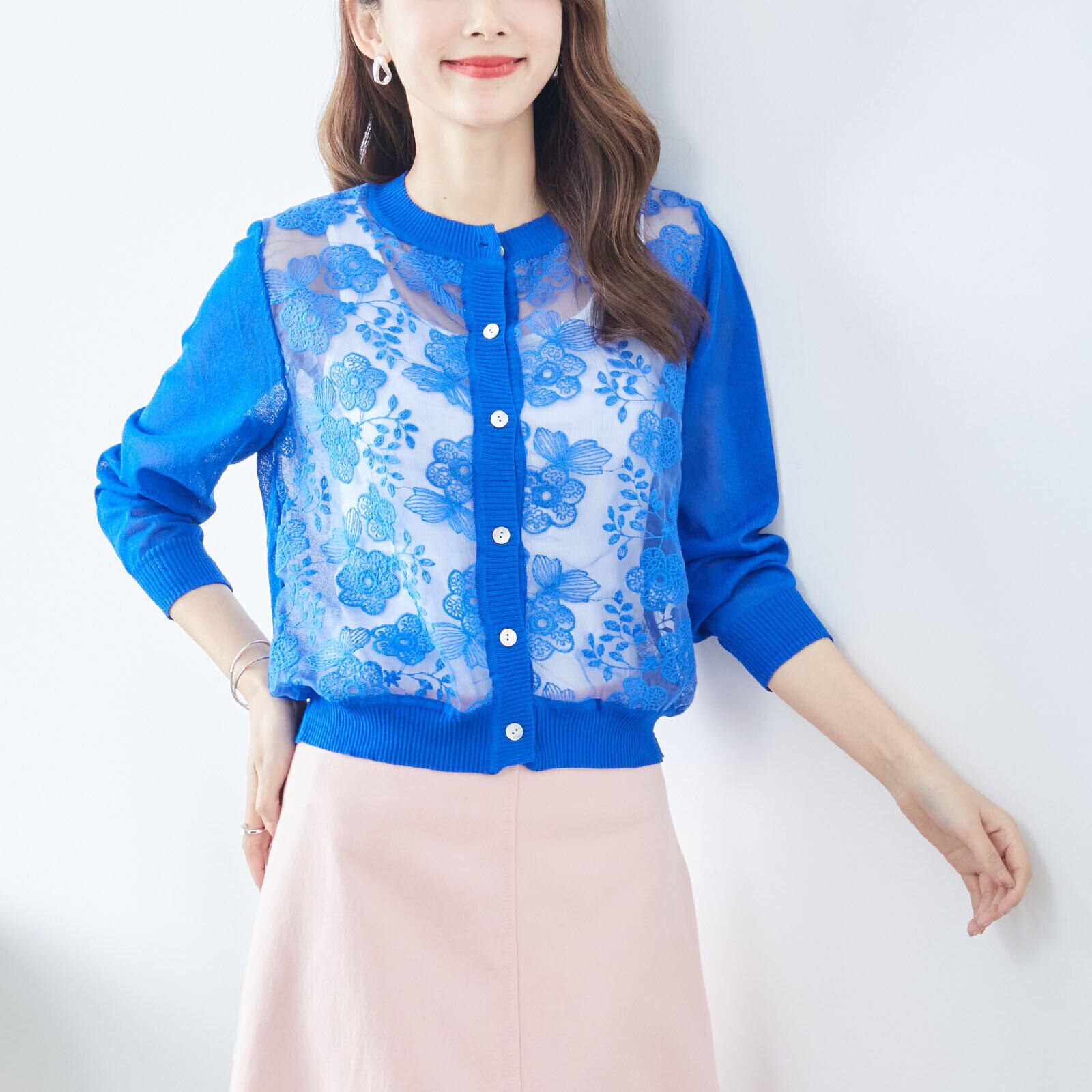 フラワーレースニットカーディガン〈ロイヤルブルー〉