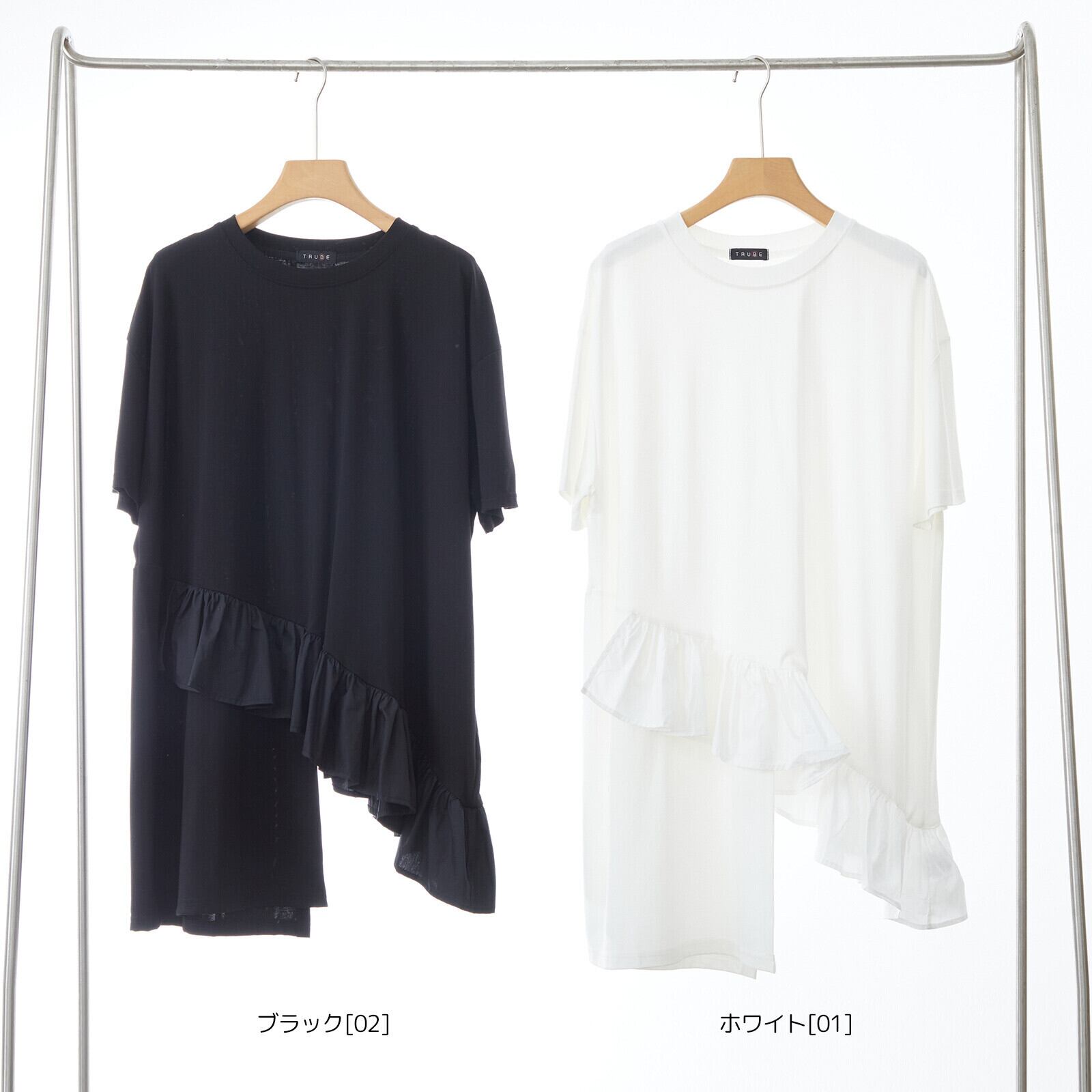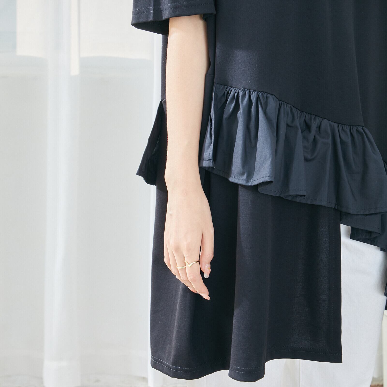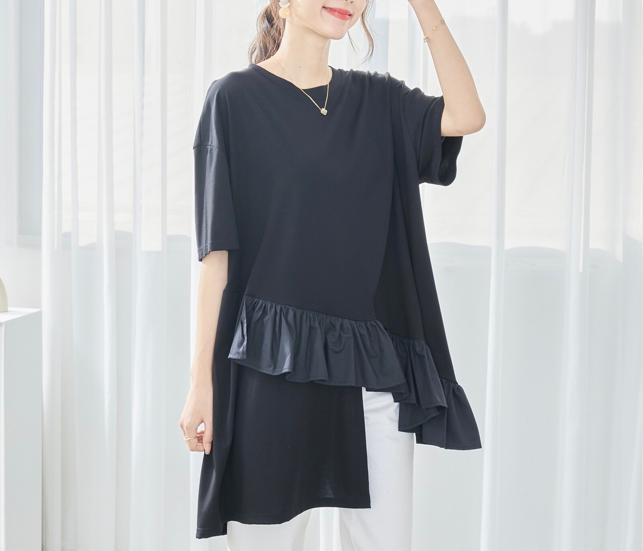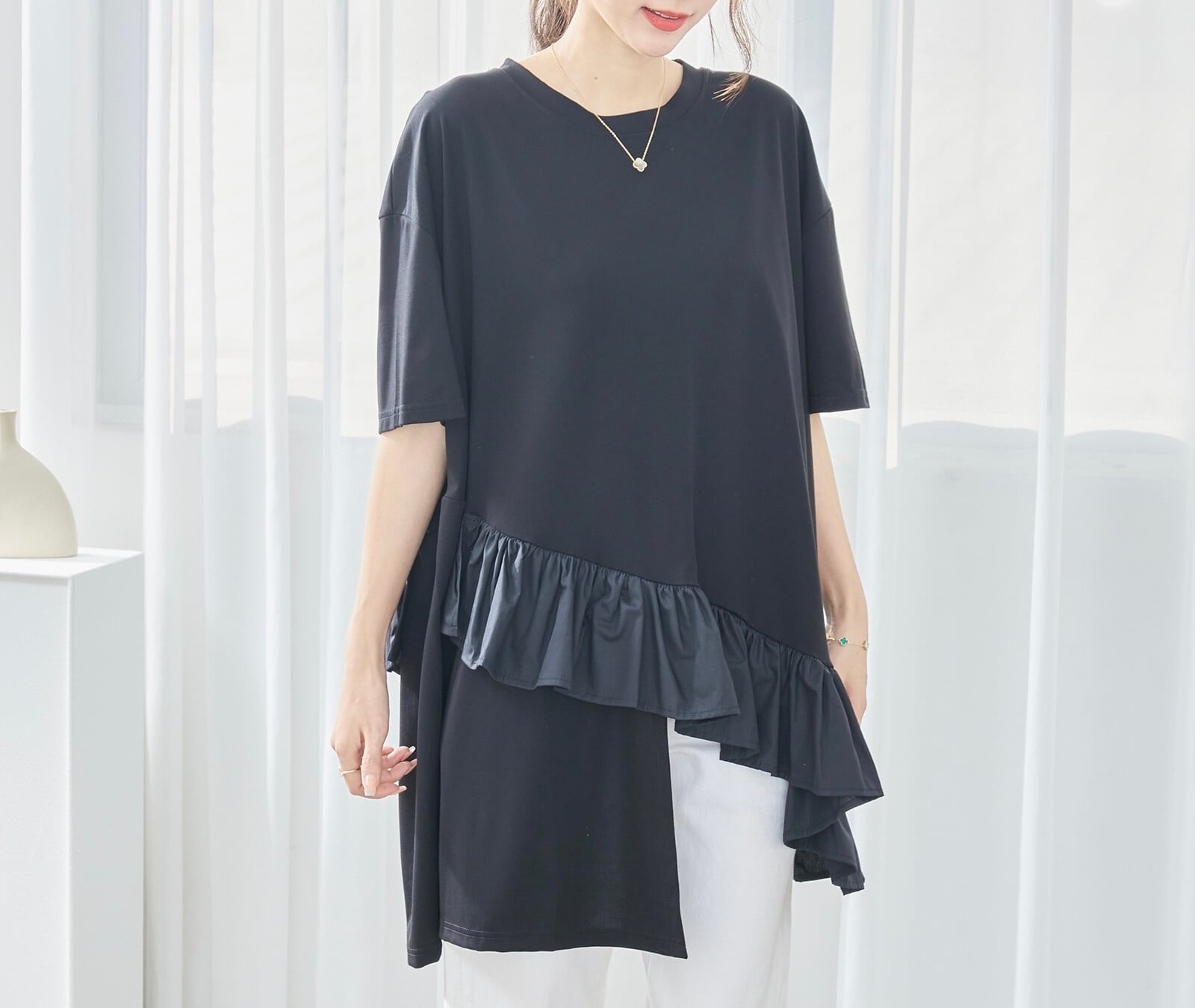 裾フリルアシンメトリーチュニック〈ブラック〉