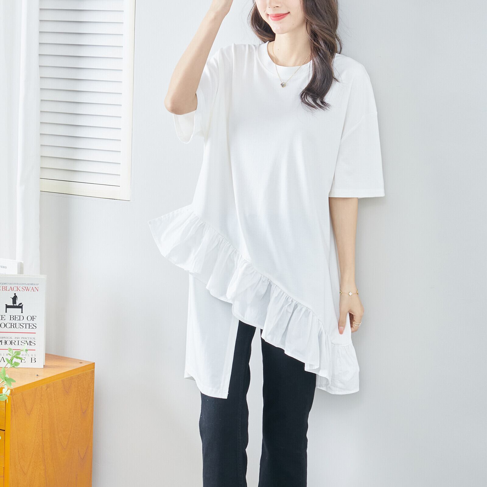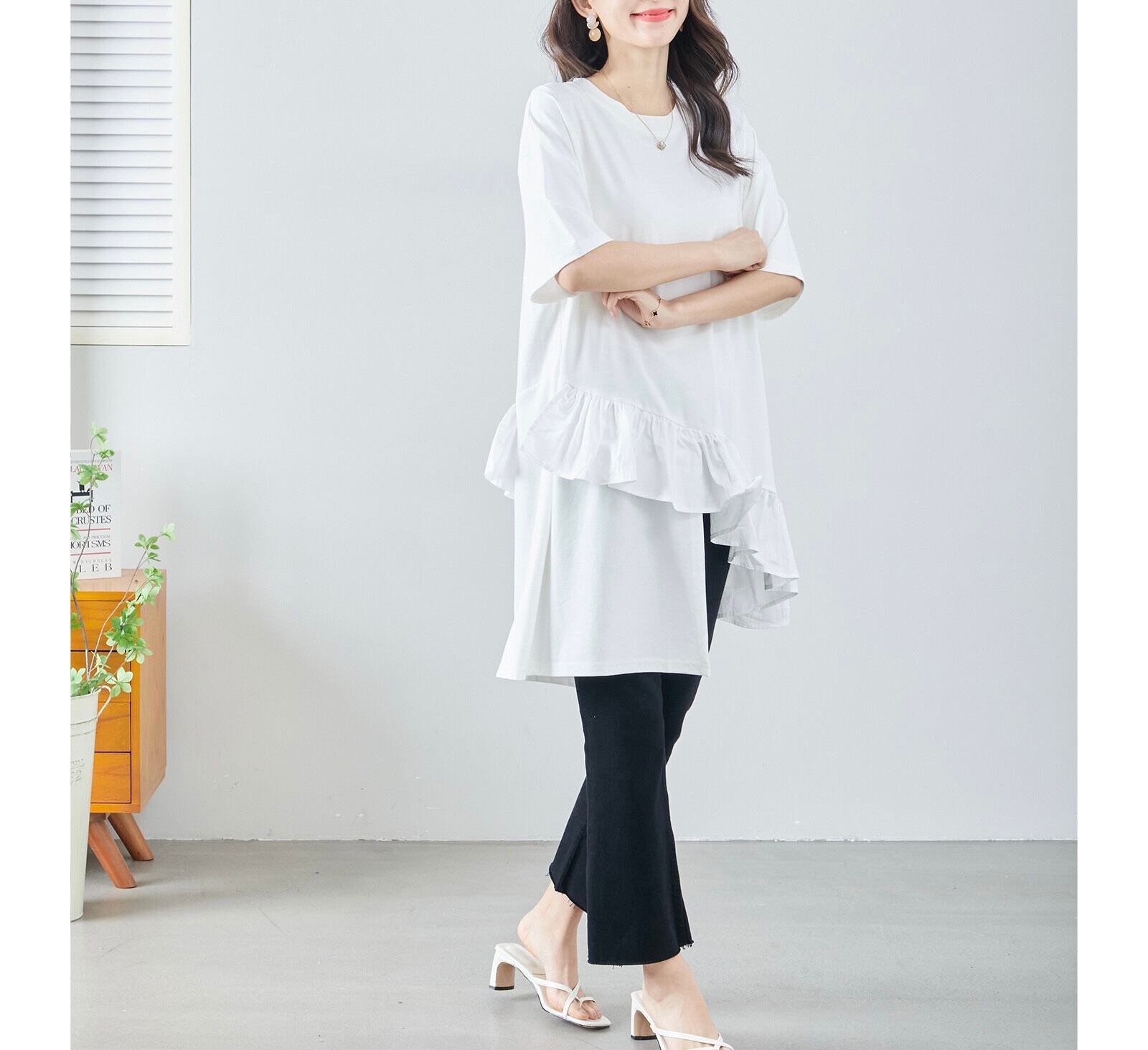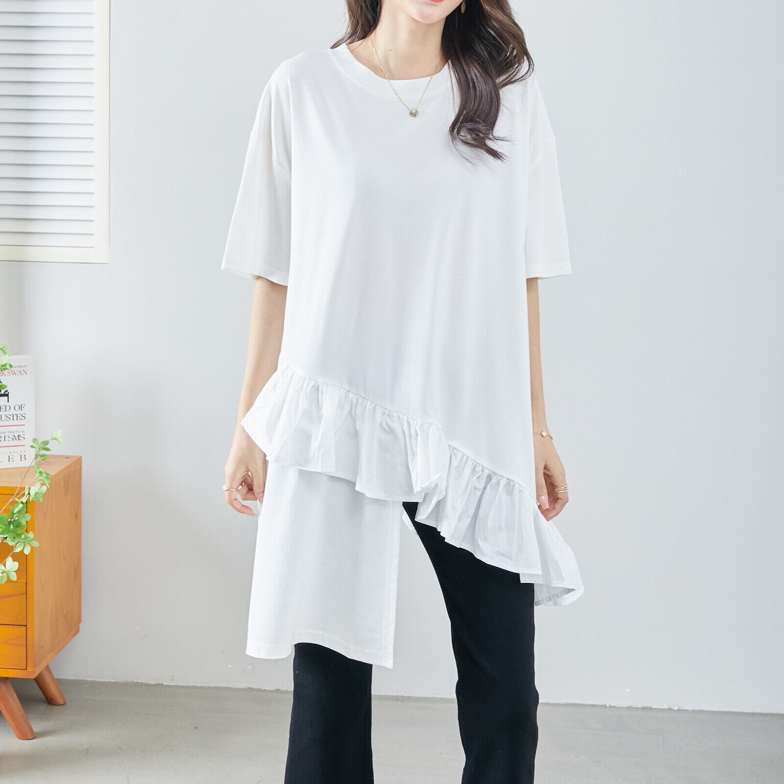 裾フリルアシンメトリーチュニック〈ホワイト〉