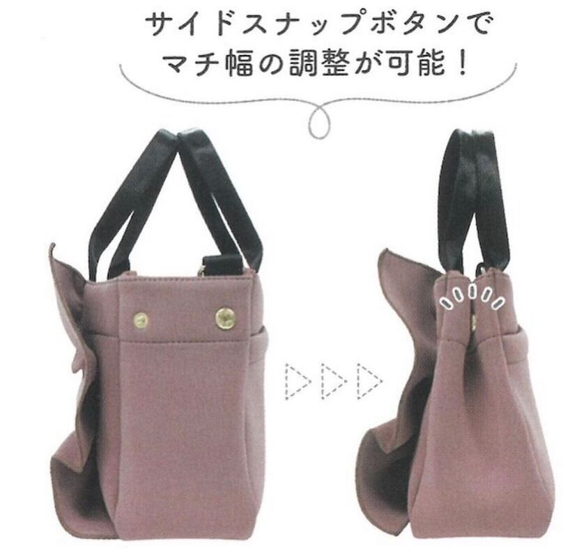 サイドスナップボタンでマチ幅の調整が可能