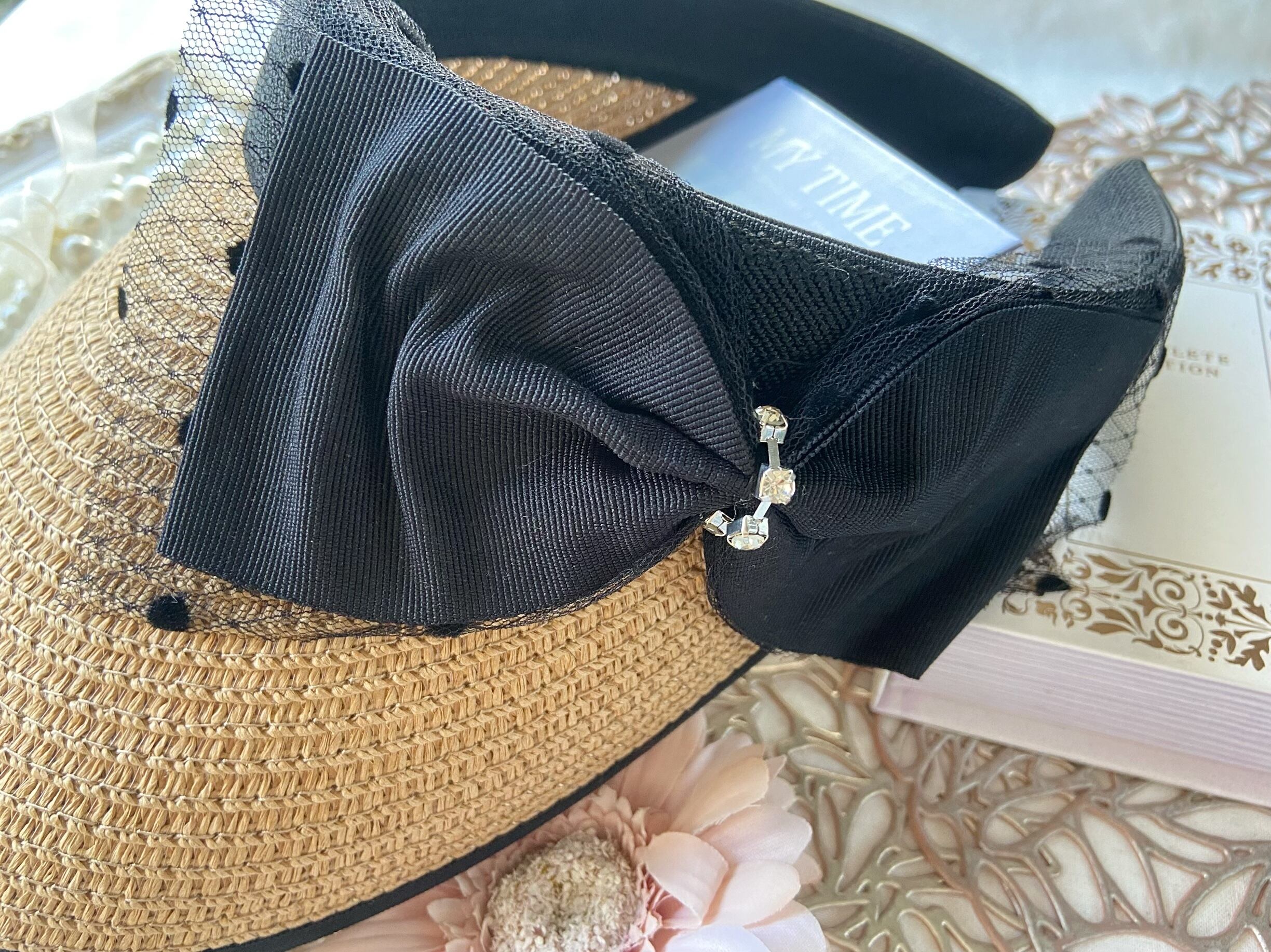 リボン付サンバイザー〈ブラウン〉