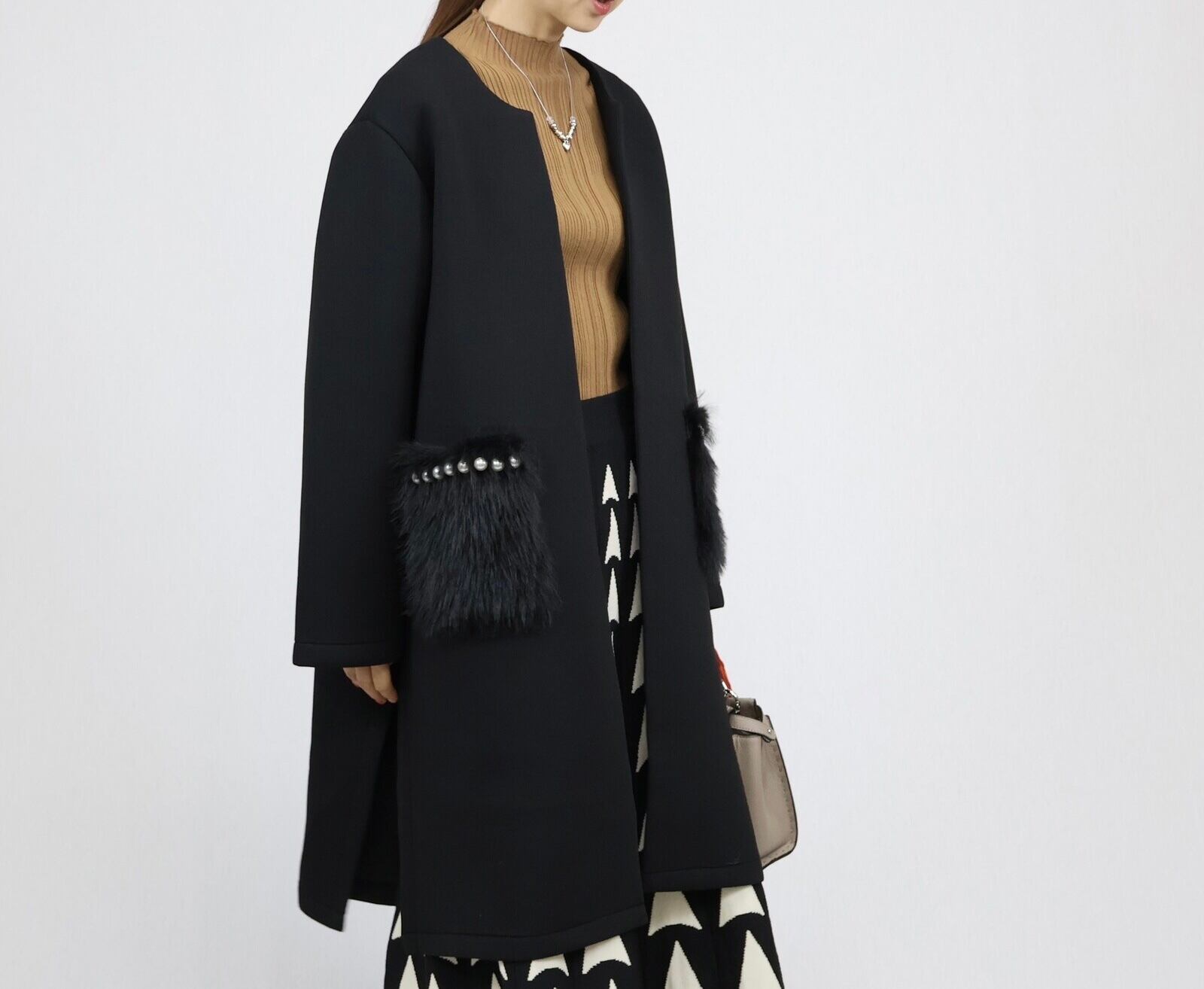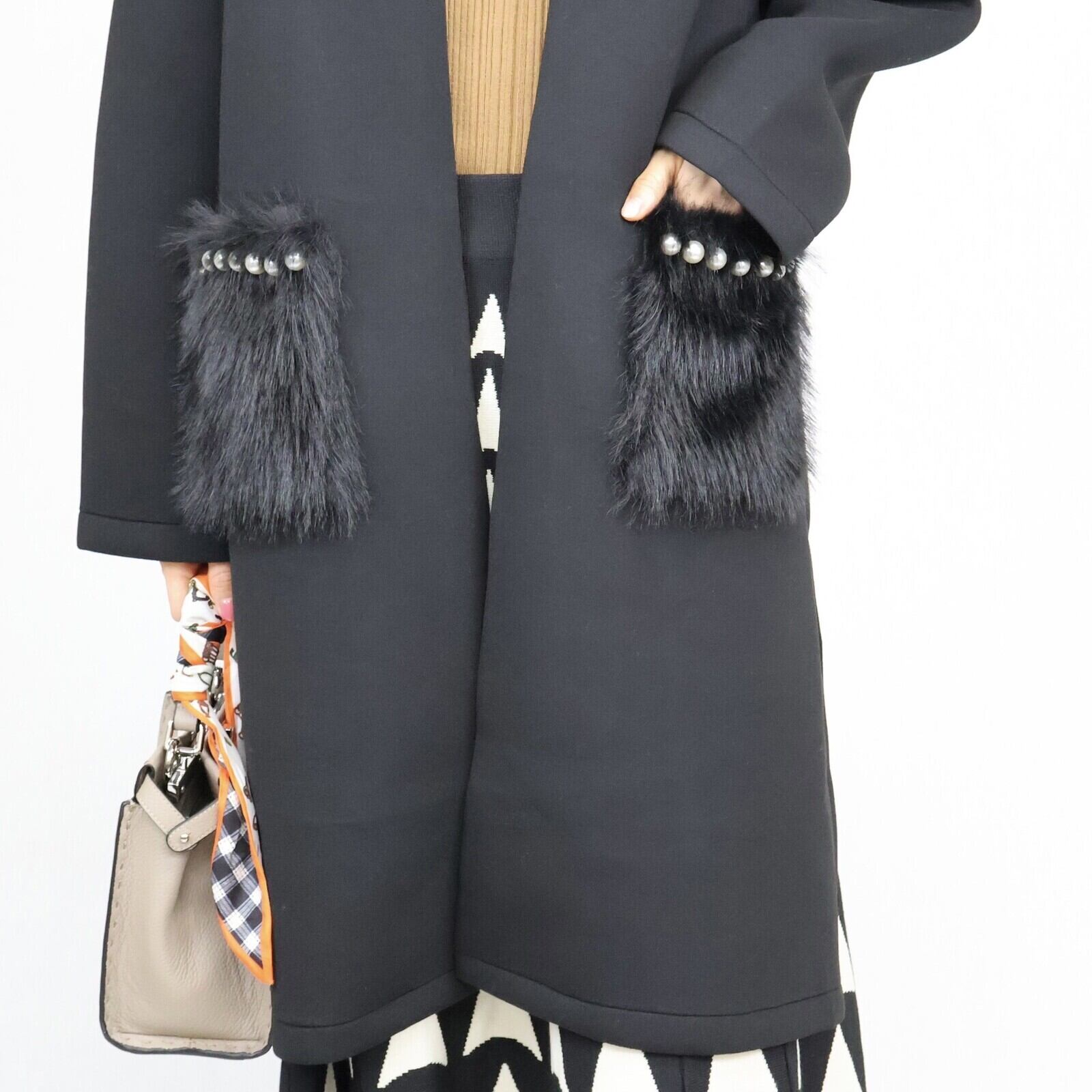 ボンディングフェイクファパール付ジャケット〈ブラック〉